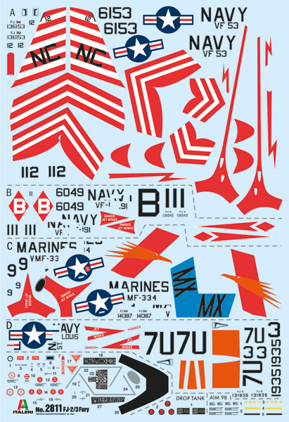 SUPER DECALS SHEET FOR 4 VERSIONS - COLOR INSTRUCTIONS SHEET