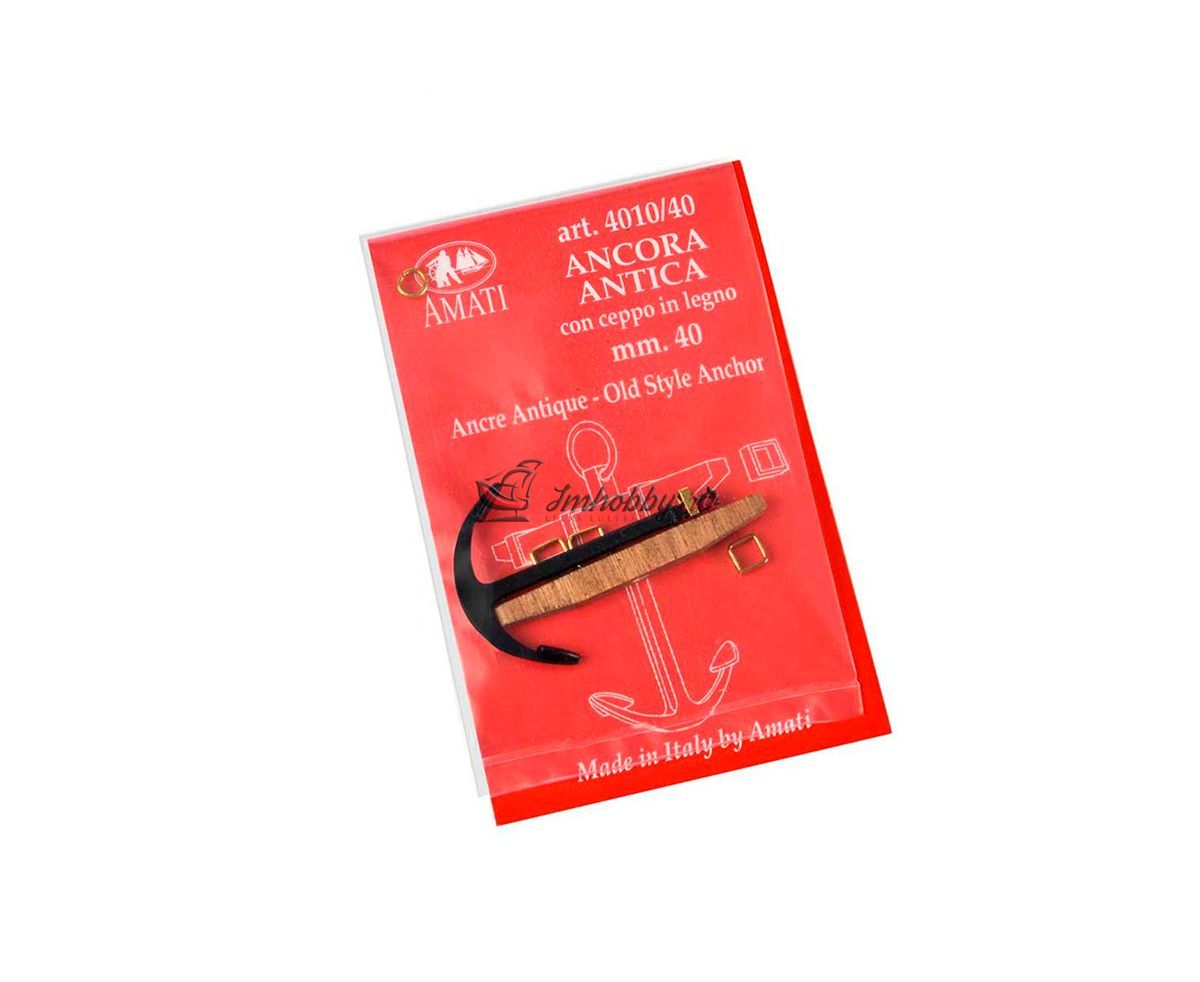 Корабельный якорь раннего образца, типичный для европейского мореходства периода до XVIII века. Якорь - металлШток - дерево и латуньРазмер - 40 ммКоличество - 1 шт