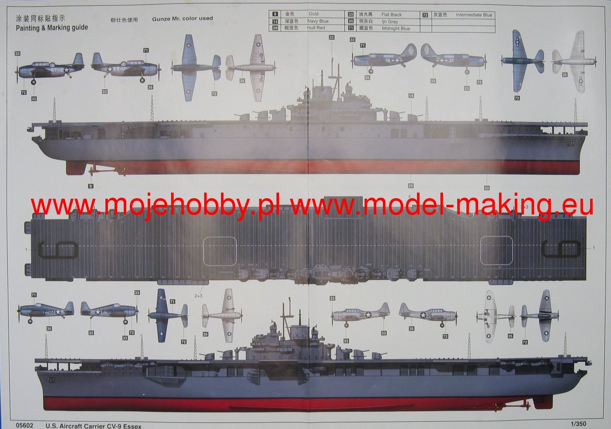 U.S. AIRCRAFT CARRIER CV-9 ESSEX (АМЕРИКАНСКИЙ АВИАНОСЕЦ CV-9 «ЭССЕКС») trumpeter 1/350