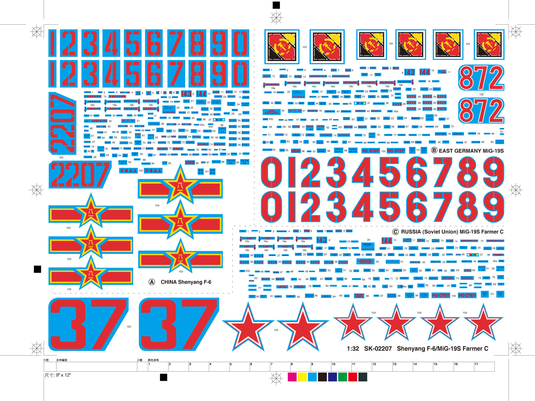Описание М&G-19 (по кодификации НАТО: Farmer Фермер) советский одноместный реактивный истребитель второго поколения, разработанный ОКБ М и Г в начале 1950-х годов. Первый советский серийный сверхзвуковой истребитель, широко применялся в системе ПВО СССР и поставлялся за рубеж. М&G-19 стал первым в мире самолётом, способным при старте с земли достигать сверхзвуковой скорости в горизонтальном полёте. М&G-19 является ровесником американского истребителя F-100 Super Sabre, хотя во Вьетнаме противостоял и более поздним F-4 Phantom II. М&G-19С Истребитель с цельноповоротным стабилизатором (отсюда и литера С), тремя 30-мм пушками НР-30, обновлённым составом БРЭО и улучшениями в конструкции планера. (1956 год) На заводах в Горьком и Новосибирске построено 2120 истребителей.