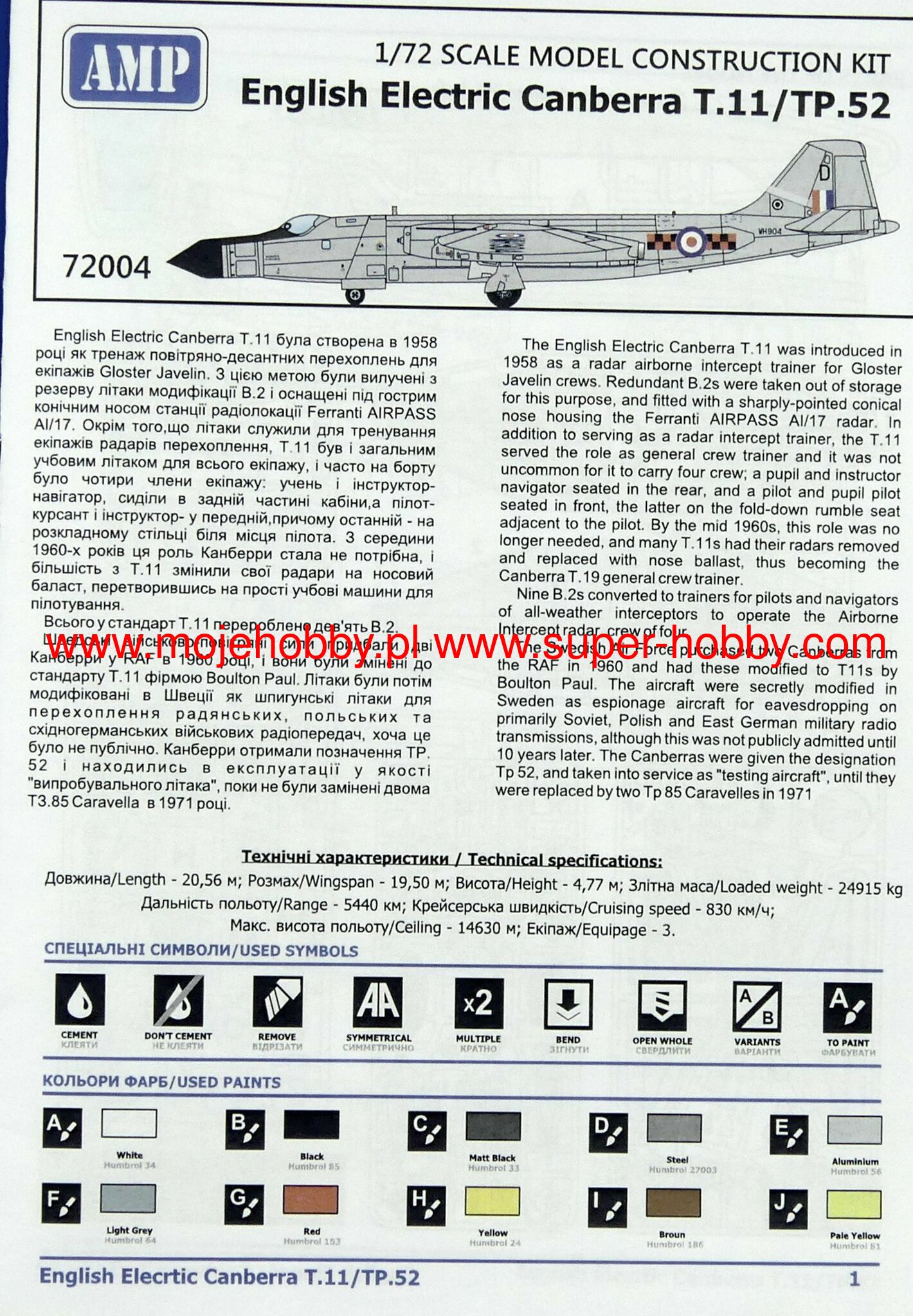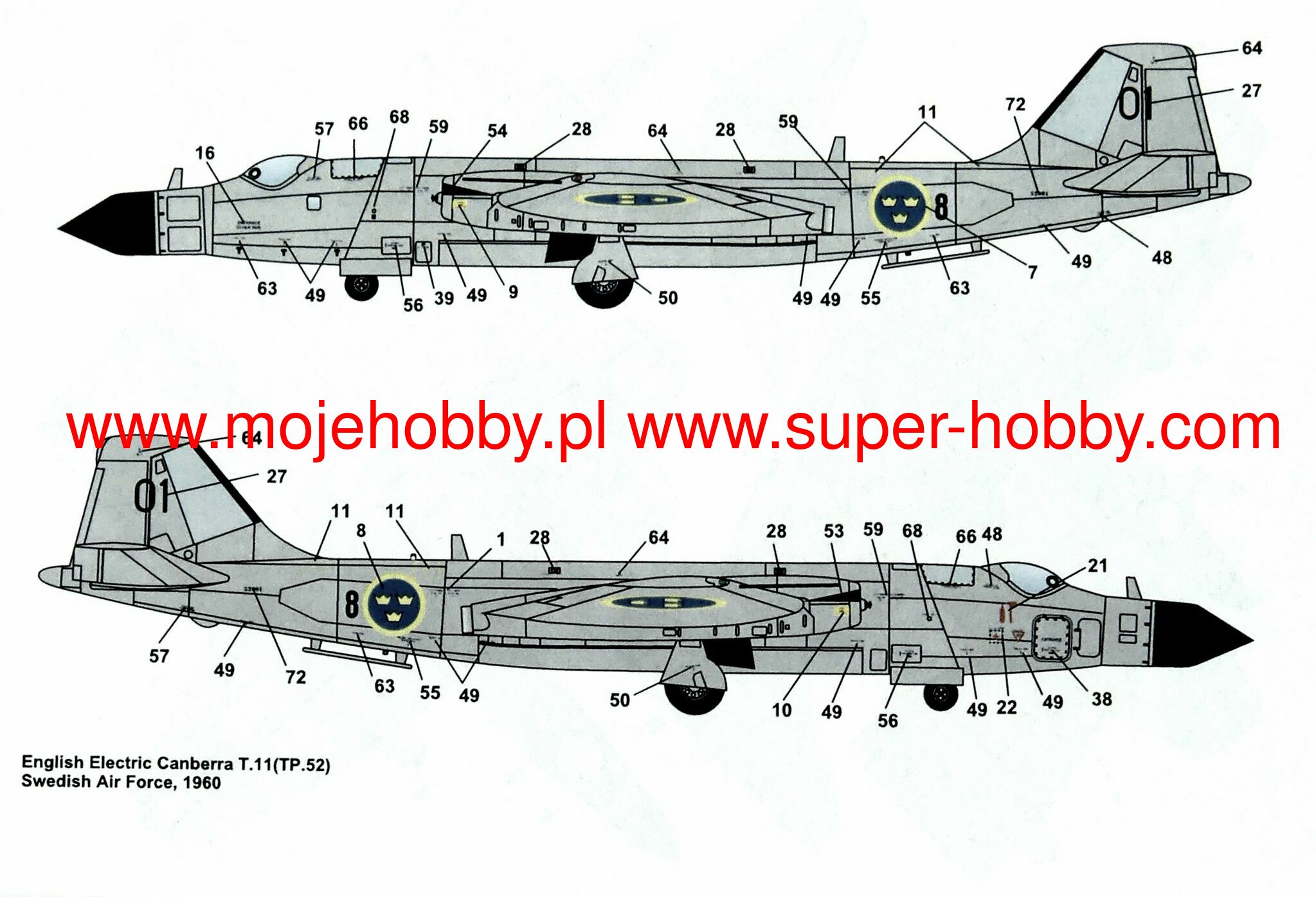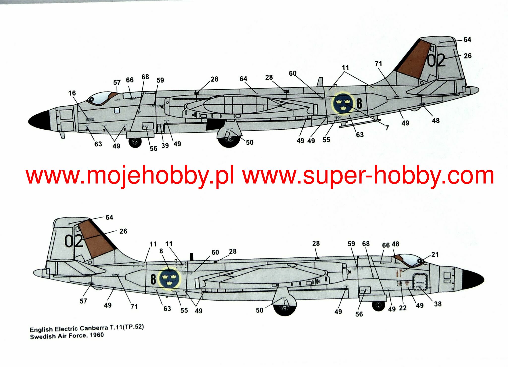 The English Electric Canberra was a British jet bomber and reconnaissance aircraft from the Cold War and modern times. The plane's flight took place in 1949, and the machine entered service in 1951. In total, about 900 aircraft of this type were built for the needs of the RAF. In the Canberra B.6 version, the drive was provided by two Rolls-Royce Avon RA7 engines with a thrust of 36 kN each. The on-board armament of the aircraft consisted of four 20mm Hispano Mark V cannons. The machine could also carry a load of bombs and rockets with a total weight of up to approx. 3,600 kilograms. Development work on the English Electric Canberra began at the end of World War II, and their goal was to create a bomber with the best possible flight parameters - including maximum speed and range - for the RAF. It was quickly recognized that the machine must be powered by jet engines. What's more, despite the good pace of work, the design of the aircraft was carefully developed and turned out to be a hit. Finally, when it was introduced to the English Electric line, the Canberra was probably the best aircraft in its class in the world, and its great performance meant that it retained its combat value throughout almost the entire Cold War! In the course of production, many versions of this successful machine were created, including the Canberra B.2 (the first serial production version), the Canberra PR.3 (the photo reconnaissance version) and the Canberra T.4 (the first training version). It is worth adding that the plane was operated not only by Great Britain, but also by Australia, Argentina and India. The English Electric Canberra, with numerous modifications and licensed production, also served in the USAF as the Martin B-57 Canberra.