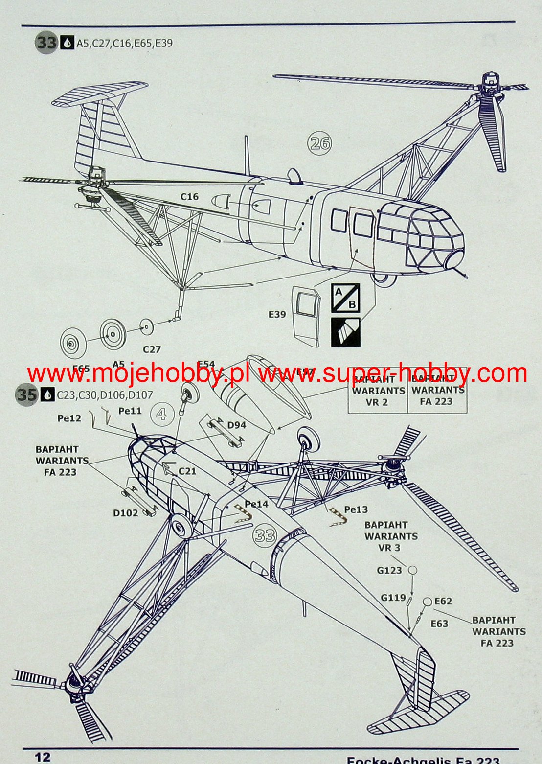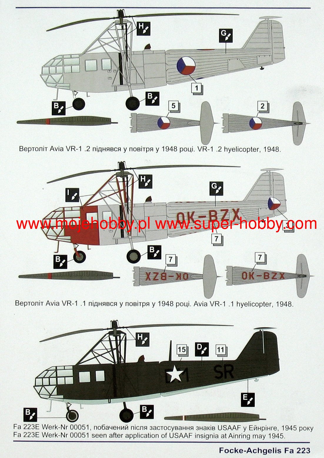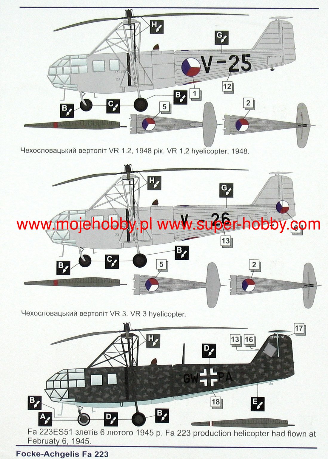 The Focke-Achgelis Fa 223 was a German multipurpose helicopter from the Second World War. The machine had a metal structure, covered to a large extent with canvas, and a fixed three-support undercarriage. The flight of the prototype took place in 1940, and serial production was carried out in 1940-1945. It is estimated that about 15-20 prototype and pre-series machines of this type were built. The drive was provided by a single engine BMW-Bramo 323D-2 with a maximum power of 1000 HP. The deck armament consisted of a single 7.92 mm MG 15 machine gun. The helicopter could also carry two bombs with a total mass of up to 500 kilograms. The Focke-Achgelis Fa 223 continued the numerous design concepts used in the Focke-Wulf Fw-61, most of all the twin main rotor system without a tail rotor. The first prototype of the machine was built in 1940 and made its maiden flight in the same year. In 1941, a second prototype (Fa 223V2) with a glass nose and windows on the sides of the fuselage was created, but in 1942 work on the machine was stopped as a result of British bombing raids. They were probably resumed only at the beginning of 1944. Only then was it decided to start mass production, but as the entire project had a relatively low priority, as well as due to the deteriorating supply of the German economy, it did not come to the end of the war. The resulting prototype and pre-series units were tested on a relatively small scale in field conditions - especially in the period 1944-1945.