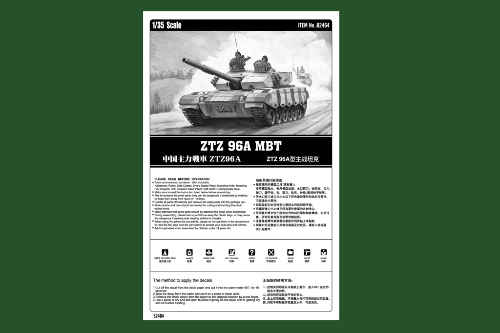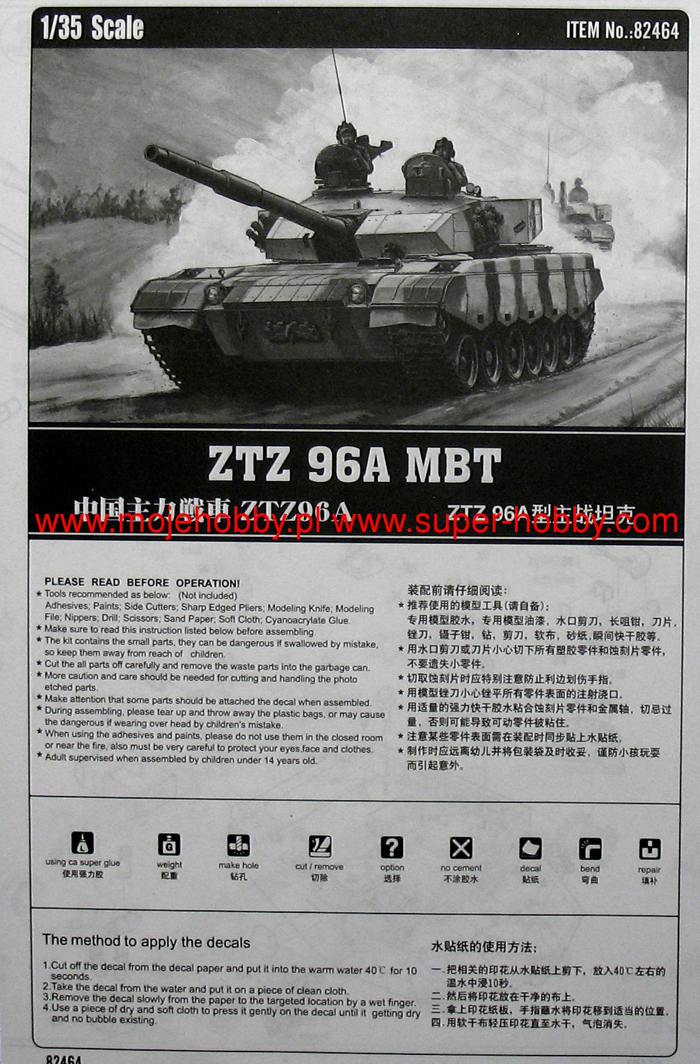 The ZTZ-96 or Type 96 is a modern Chinese Main Battle Tank. The first prototypes of the vehicle were probably created in the early 1990s, and serial production started in 1996 or 1997 continues to this day. To date (2018), 1,500-2,500 tanks of this type have been produced. The ZTZ-96 is powered by a 1000 HP diesel engine. The vehicle is armed with a single 125mm tank gun, a license-free copy of the Russian 2A46 cannon. In addition, the tank's armament consists of 2 machine guns: cal. 12.7 mm and 7.62 mm. The ZTZ-96 was created as a successor to the Type 85 tank. The Chinese designers set themselves the goal of the ZTZ-96 to create a machine that would be able to match Russian designs like the T-80U or T-80UD. To shorten the work, many components from the Type 85 tank were used. However, a few new elements were added: first of all, a slightly modernized gun, better FCS (fire control system) and improved armor. Probably a more powerful engine was also used, which improved the mobility of the car in the field. A significant modification of the ZTZ-96 car is the ZTZ-96G version, which received much better reactive armor and an SKO with thermal imaging cameras. It is commonly believed that the ZTZ-96 is currently the main battle tank of the PRC army.