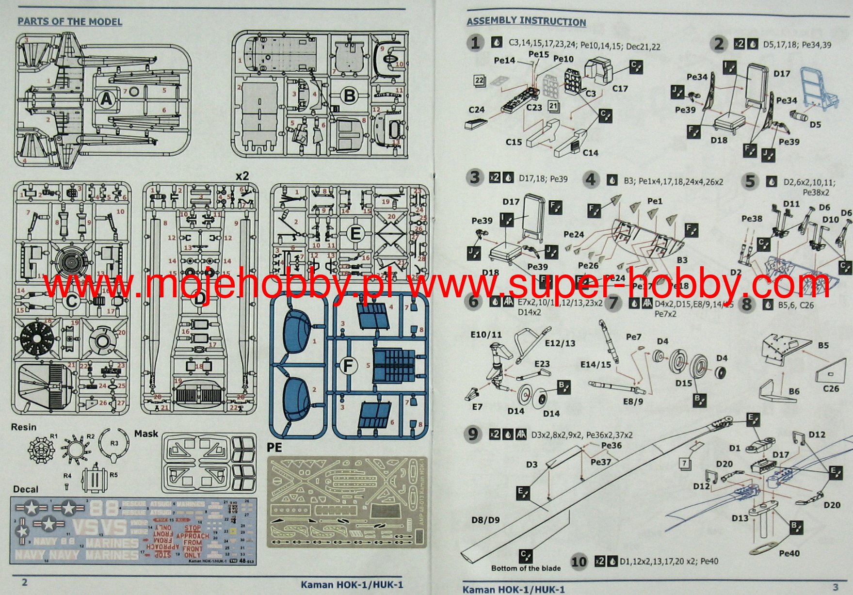 The Kaman HOK-1 / HUK-1 was an American multi-role helicopter developed in a counter-rotating twin-rotor system from the Cold War period. The prototype's flight took place in the 1950s. The length of the machine was approx. 7.6 m, with a rotor diameter of approx. 14.3 m. The drive was provided by a single Pratt and Whitey R-1340 Wasp engine in the R-1340-48 or R-1340-52 version. The genesis of the Kaman HOK-1 / HUK-1 machine dates back to the end of World War II, when the Kaman plant was interested in building a helicopter in a very unusual rotor system, now called a counter-rotating double rotor system or the Flettner system. Over the years, the machine was getting more and more technically perfect, and finally it aroused the interest of the US Marine Corps and the US Navy. Both types of US armed forces placed an order for it, the navy version was called HUK-1 and was powered by the R-1340-52 Wasp engine, while the USMC version was called HOK-1 and used the R- 1340-48 Wasp with power up to 600 HP. In total, both versions were made slightly over 120 pieces. They were used primarily for reconnaissance, liaison and transport tasks.