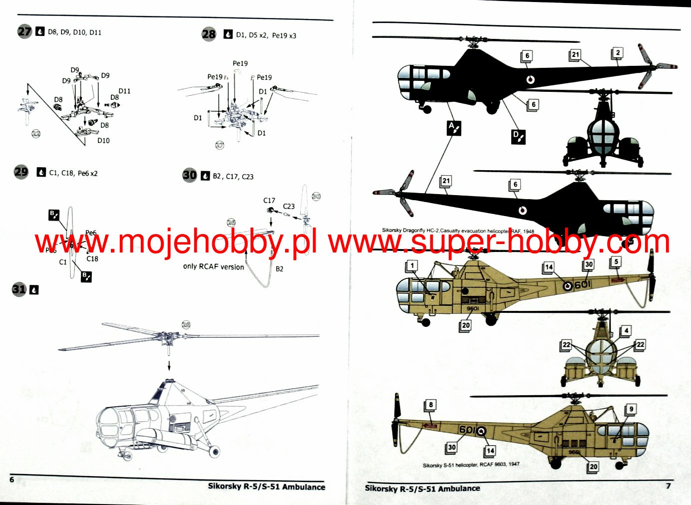 The Sikorsky R-5 (other designations: Sikorsky H-5, S-48 or S-51) was an American multipurpose helicopter from World War II and the post-war period. The flight of the prototype took place in 1943, and the machine was put into the line in 1945. In total, it is estimated that over 300 helicopters of this type were built. The drive was provided by a single Pratt and Whitney Wasp Junior engine with 450 HP. The hull length of this machine was 17.4 meters, and the main rotor diameter was 14.63 meters. The maximum take-off weight oscillated around 2,200 kilograms, and the maximum speed did not exceed 175 km / h. The Sikorsky R-5 was developed on the basis of the manufacturer's previous machine - the R-4 model. In relation to it, it was characterized primarily by the ability to carry loads of greater weight, but also by a higher speed or maximum and operational ceiling. It also used an engine with more than twice the power as a drive unit! Several versions of the Sikorsky R-5 helicopter were developed in the course of serial production, including: R-5A (medical evacuation version), R-5D (version with improved chassis) or H-5G (version with a four-person cabin and rescue equipment). The Sikorsky R-5 machines were used on a relatively large scale during the Korean War (1950-1953). It is worth adding that the machine was licensed in Great Britain under the name Westland-Sikorsky WS-51 Dragonfly.