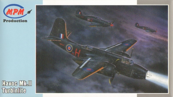 Описание Havoc II Turbinlite - самолёт-целеуказатель. Всего в годы войны было оборудовано около 70 самолётов двух модификаций: Havoc I Turbinlite и Havoc II Turbinlite. Модификация I строилась на базе бомбардировщиков Boston (первых А-20 полученных британцами), модификация II - на базе DB-7A, отличавшихся от Boston более мощными двигателями.