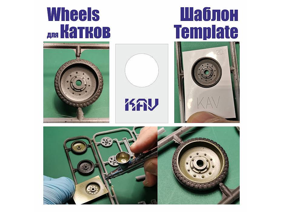 Шаблоны из пластика для окраски катков для танков Т-54/55 (и САУ на его базе). Позволяет окрасить катки танков Т-44/54/55 производства MiniArt.