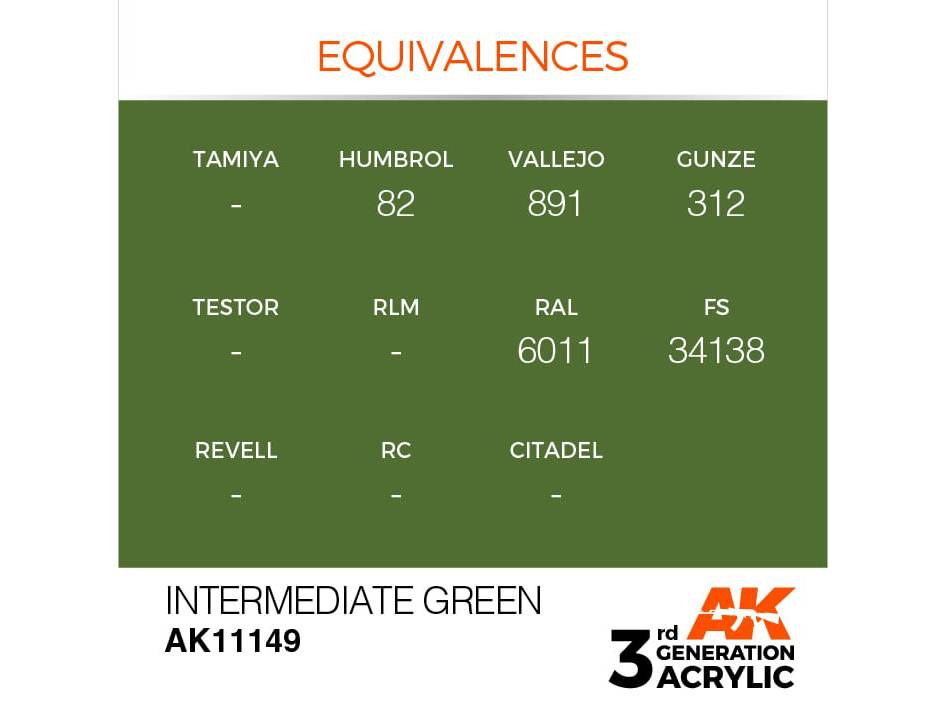 АКРИЛОВАЯ КРАСКА AK INTERACTIVE 3RD GENERATION STANDARD. INTERMEDIATE GREEN. 17 МЛ