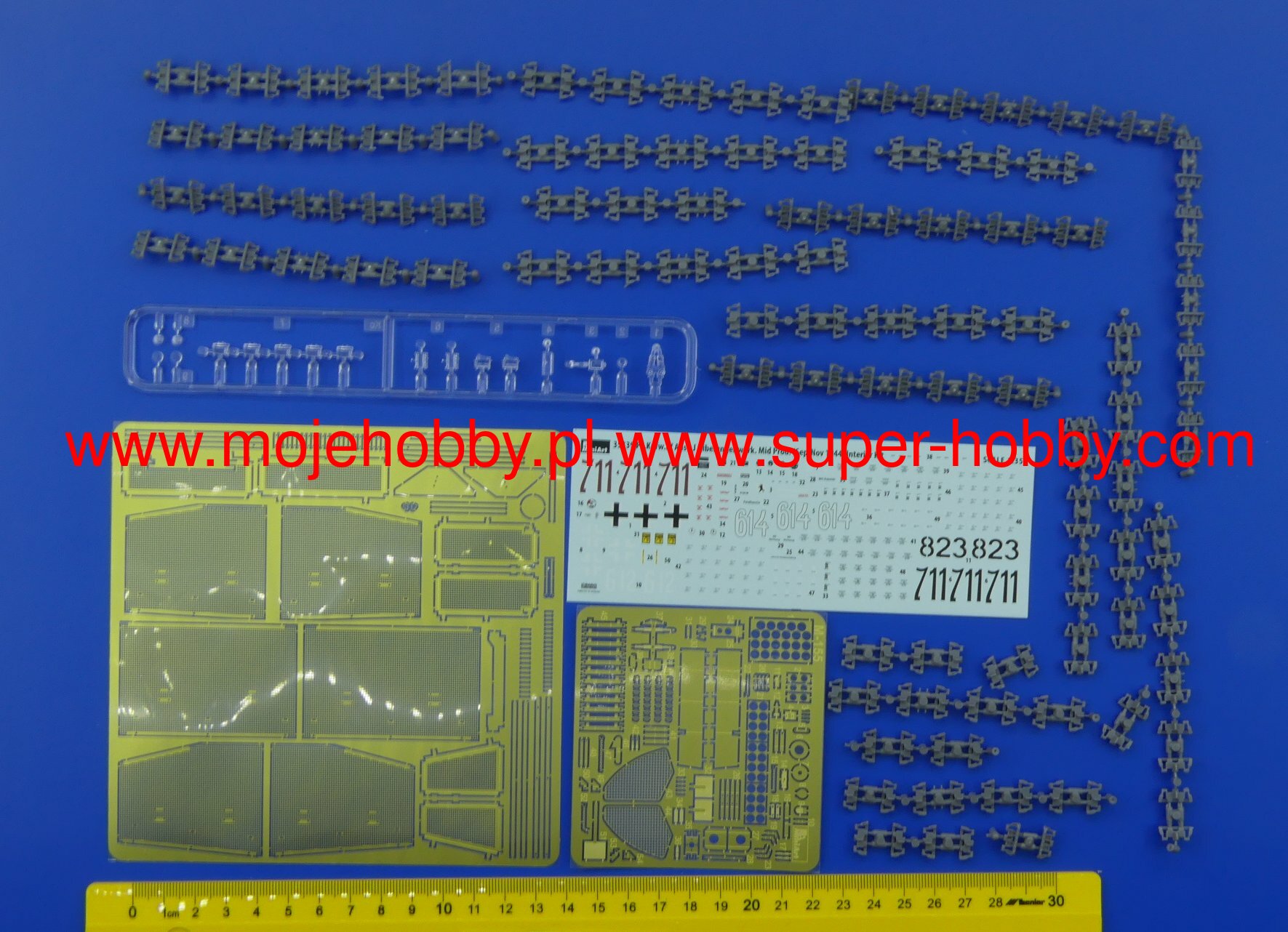 HIGHLY DETAILED MODEL DRIVER COMPARTMENT INTERIOR ACCURATELY REPRESENTED FULLY DETAILED FIGHTING COMPARTMENT INTERIOR HIGHLY DETAILED INTERIOR OF TURRET ALL HATCHES CAN BE POSED OPEN & CLOSED FULL AMMUNITION INCLUDED ENGINE INCLUDED WORKABLE TRACKS INCLUDED CLEAR PLASTIC PARTS INCLUDED PHOTO-ETCHED PARTS INCLUDED DECAL SHEET FOR 4 OPTIONS