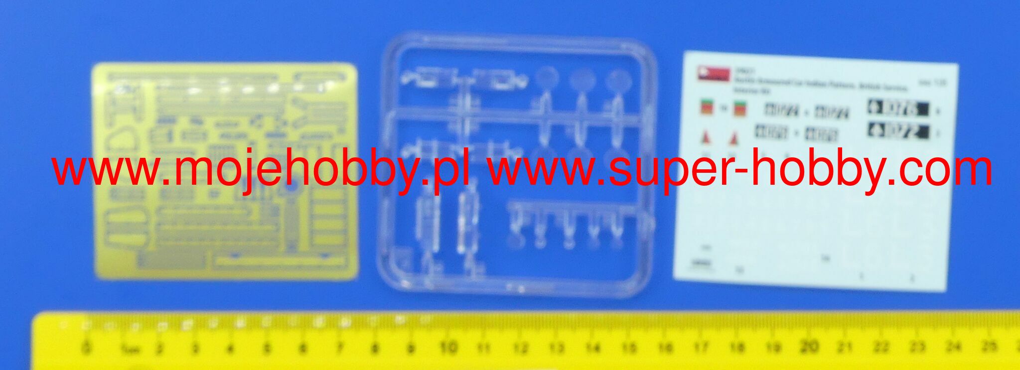 HIGHLY DETAILED PLASTIC MODEL KIT. BOX CONTAINS MODEL OF ARMORED CAR WITH FULL INTERIOR DRIVER COMPARTMENT AND INTERIOR OF TURRETS ACCURATELY REPRESENTED. HIGHLY DETAILED ENGINE COMPARTMENT ALL HATCHES CAN BE ASSEMBLED IN OPEN OR CLOSED POSITION. CLEAR PLASTIC PARTS INCLUDED 4 MARKING OPTIONS PE PARTS ARE INCLUDED