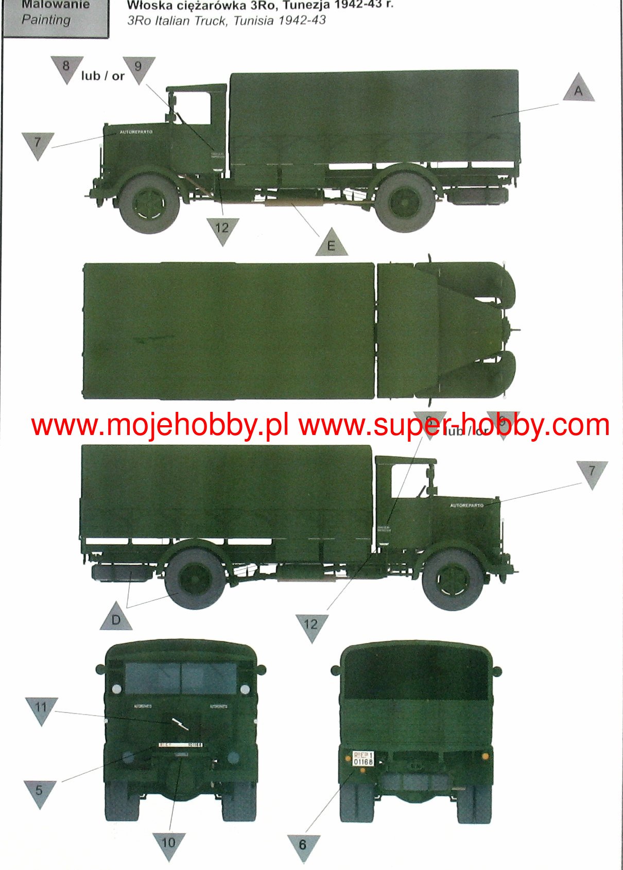 Lancia 3Ro is an Italian military and civilian truck from the interwar period, World War II and the post-war period. The production of the vehicle was carried out in the years 1938-1950. The weight of the wagon was about 5.6 tons, length - 7.08 meters, and width - 2.35 meters. The drive was provided by a single engine with a capacity of 5.9 liters and power up to 95 HP. The drive was transferred via a manual gearbox with 5 speeds. The 3Ro model was developed as an extension of Lancia's previous Ro and Ro-Ro trucks. Compared to its predecessors, it differed primarily in a different, larger and more powerful drive unit, but also in a significantly improved gearbox. The car was also characterized by a simple and solid construction, it was also relatively easy to use and manufacture. For these reasons, the Lancia 3Ro was one of the basic trucks of the Italian army during the Second World War. It was used both during the war with Greece (1940-1941), the campaign in the Balkans in 1941 and during the fighting in North Africa (1940-1943).