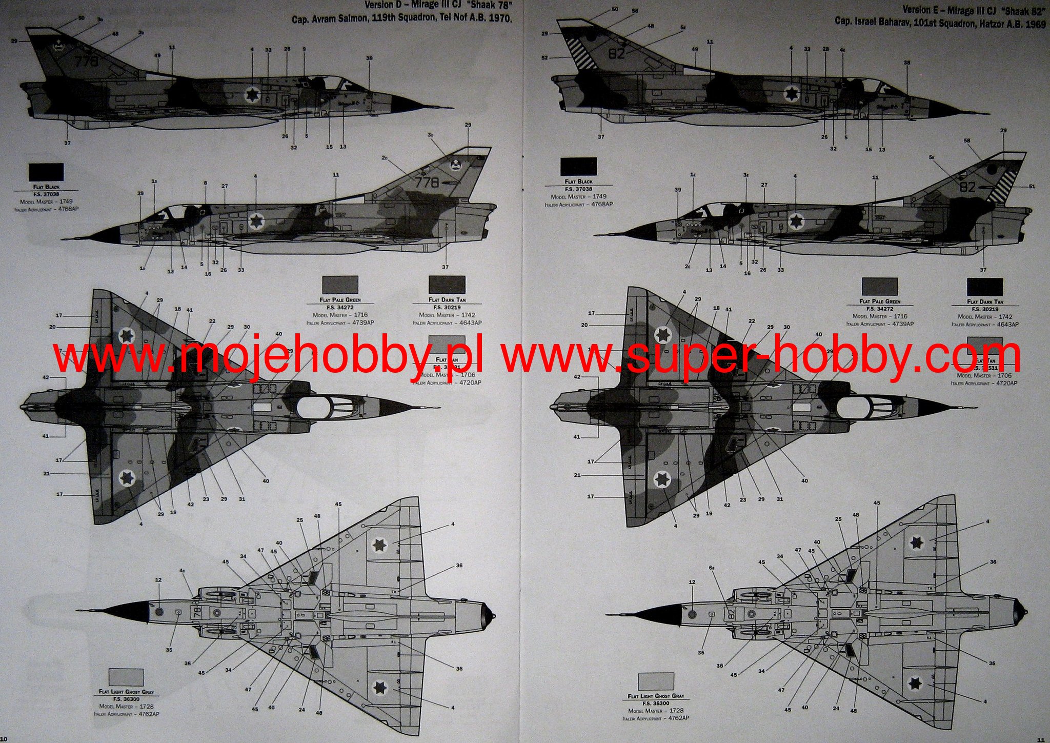 SUPER DECAL SHEET - 6 VERSIONSMost of Israeli pilots that have achieved the “aces” qualification were in service from the 60s, participating in the “Six-day war” in 1967 and in the aerial battles which followed in 1969-70, culminating in the “Yom Kippur war” of 1973, with the Mirage III fighter plane. Many of them remained in service moving on to other types of aircrafts which progressively were handed to the units: F-4 Phantom, Nesher and then F-16. This box is dedicated to some of these pilots that achieved part of their victories with the Mirage III between 1967 and 1973. Most of these pilots belonged to the 101st Squadron, which at the time of the 1967 War was the elite unit of Israeli aviation.