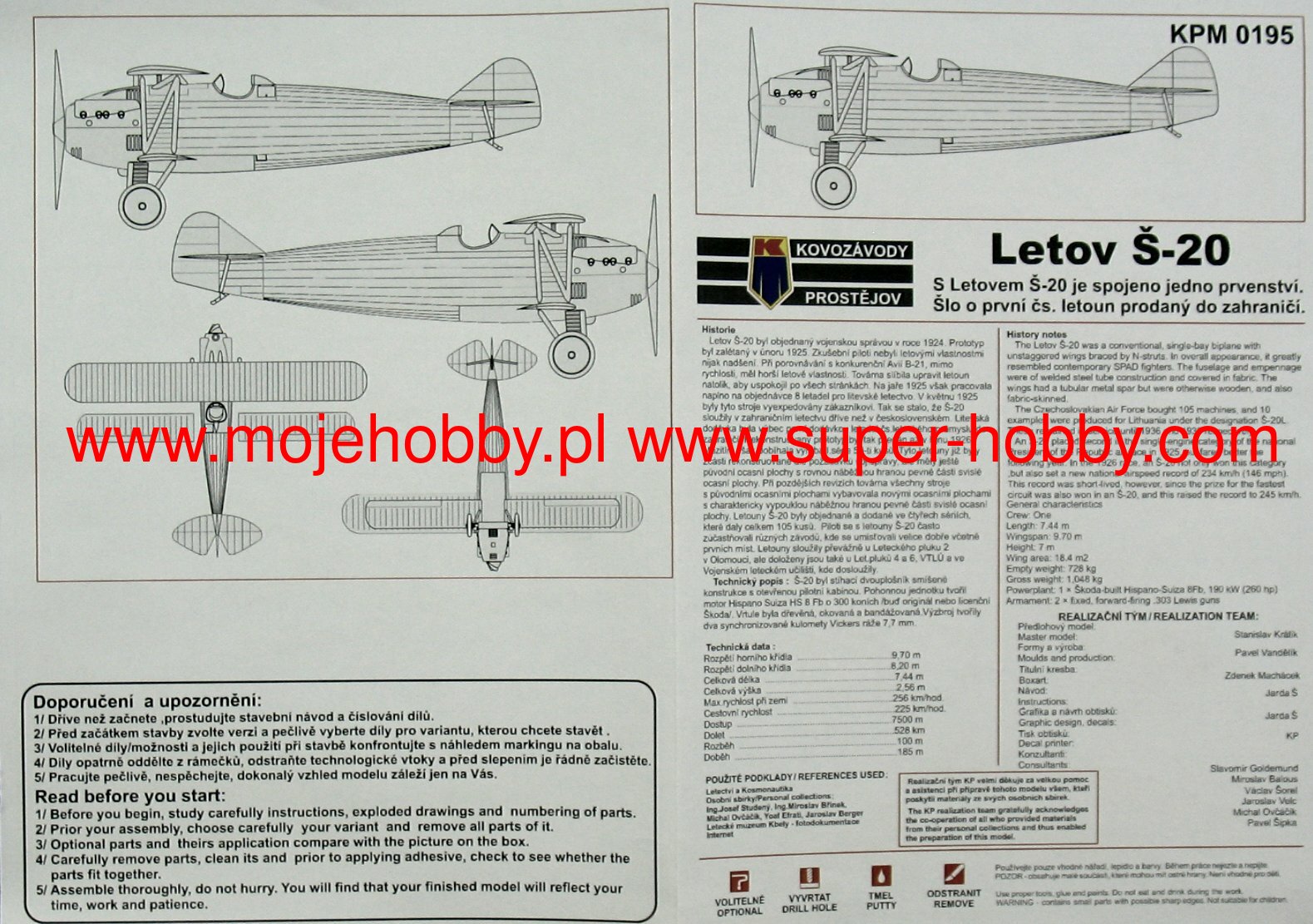 The Letov S-20 was a Czechoslovak fighter plane in the interwar period in a biplane configuration. The drive was provided - in the first production batch - by a single motor Hispano-Suiza 8FB 260 hp. The prototype flight took place in 1925. In total, about 120 aircraft of this type were built. The deck armament consisted of two 7.7 mm machine guns. The Letov S-20 was commissioned by the Czechoslovak Air Force as a complement to the fighter planes produced by Avia. It was a conventional plane for those times, resembling the French SPAD machines in many solutions. Despite the conservative design, the Letov S-20 was a successful aircraft, characterized above all by a good top speed. In the course of serial production, several versions of this aircraft were created, including: S-20 (fighter version), S-20M (basic fighter version with improved aerodynamics) or S-20L (fighter version, exported to Lithuania). A training version was also created (S-21), but it did not enter mass production.