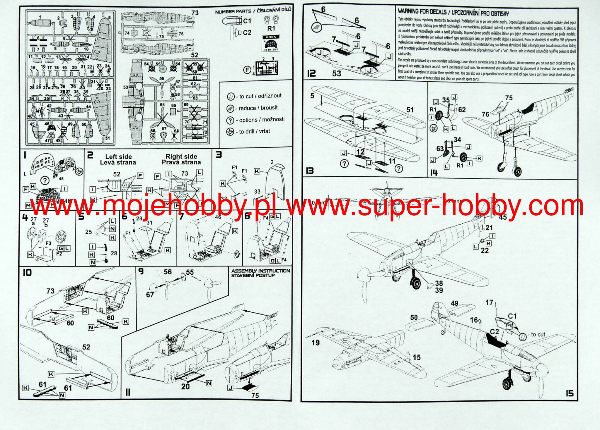 The Messerschmitt Bf-109 is a German metal-structure single-engine fighter in a low wing configuration with a classic tail. It turned out to be the basic and most produced Luftwaffe fighter during World War II. The flight of the prototype took place on May 29, 1935, and serial production continued in the years 1936-1945. In total, it is estimated that a total of about 35,000 Messerschmitt Bf-109 fighters of all varieties were produced, many of which ended up in the Czech and Israeli air forces after the war. The roots of the Bf-109 go back to the competition announced in 1933 by the Luftwaffe for a new fighter plane. In competition with the He-112, the Bf-109 project initially lost, but thanks to Willie Messerschmitt's intrigues, the project could continue and eventually he was the winner of the competition, becoming the Luftwaffe's primary fighter. Several main variants of the Bf-109 were developed in the course of production. The first pre-production series was the Bf-109B (Berta) with different versions of the Junkers Jumo 210 (A or Da) engine. They were tested in Spain from 1937 during the Civil War. The next version is the Bf-109C (Caesar). They had a different engine than the B version, and extensive armament consisting of two 20mm and 2 HP 7.92mm cannons. These machines also fought in the skies of Spain. The third version is the Bf-109D (Dora) with the Junkers Jumo 210 Da or Daimler-Benz DB 600 engine. It fought in the September campaign, but at the turn of 1939/1940 it was replaced by the E version. The most famous model was the Bf-109E (Emil) with a Daimler-Benz 601A or N engine. It was the first to use a three-blade, not a two-blade propeller. Bf-109E fought in the French campaign, over England, and in North Africa and on the Eastern Front. The ace who started his career on the Bf-109E was the famous Adolf Galland. The next version is the Bf-109F (Friedrich), which, according to the German pilots, was the most aerodynamically perfect. It sowed the changed shape of the fuselage, wings, cabin fairings, but no new engine was used. It was put into service at the turn of 1940/1941. As part of the development of the design, further Bf-109 specifications were developed, of which the G (Gustav) version was produced in the largest number of copies. The most important change increasing the machine's performance was the installation of a new 12-cylinder Daimler-Benz DB605A engine with 1475HP. The armament of the Bf-109G was a pair of 13mm machine guns located in the fuselage in front of the cockpit fairing, and the MG151 20mm or heavier MK108 30mm cannon. The last mass-produced version was the Bf-109K (Kurfirst), which production started in October 1944. A Daimler-Benz DB 605DB or DC unit was used as the engine. The Bf-109K was the fastest version produced during World War II, reaching up to 730 km / h. Apart from that, two versions were created - H and Z, but they were rather experimental versions and their mass production did not start. Subsequent improvements in propulsion and armament made the Messerschmitt Bf-109 one of the most dangerous fighters of World War II, and at the same time showed the great potential of the slightly angular airframe created by Willi Messerschmitt. Technical data (version Bf-109 G-6): length: 8.95 m, wingspan: 9.92 m, height: 2.6 m, maximum speed: 640 km / h, rate of climb: 17 m / s, maximum range: 850 km, maximum ceiling 12000m, armament: fixed - 2 MG131 13mm machine guns and 1 MG151 20mm cannon, suspended - 250 kg bombs, or 2 Wfr missile launchers. Gr. 21.