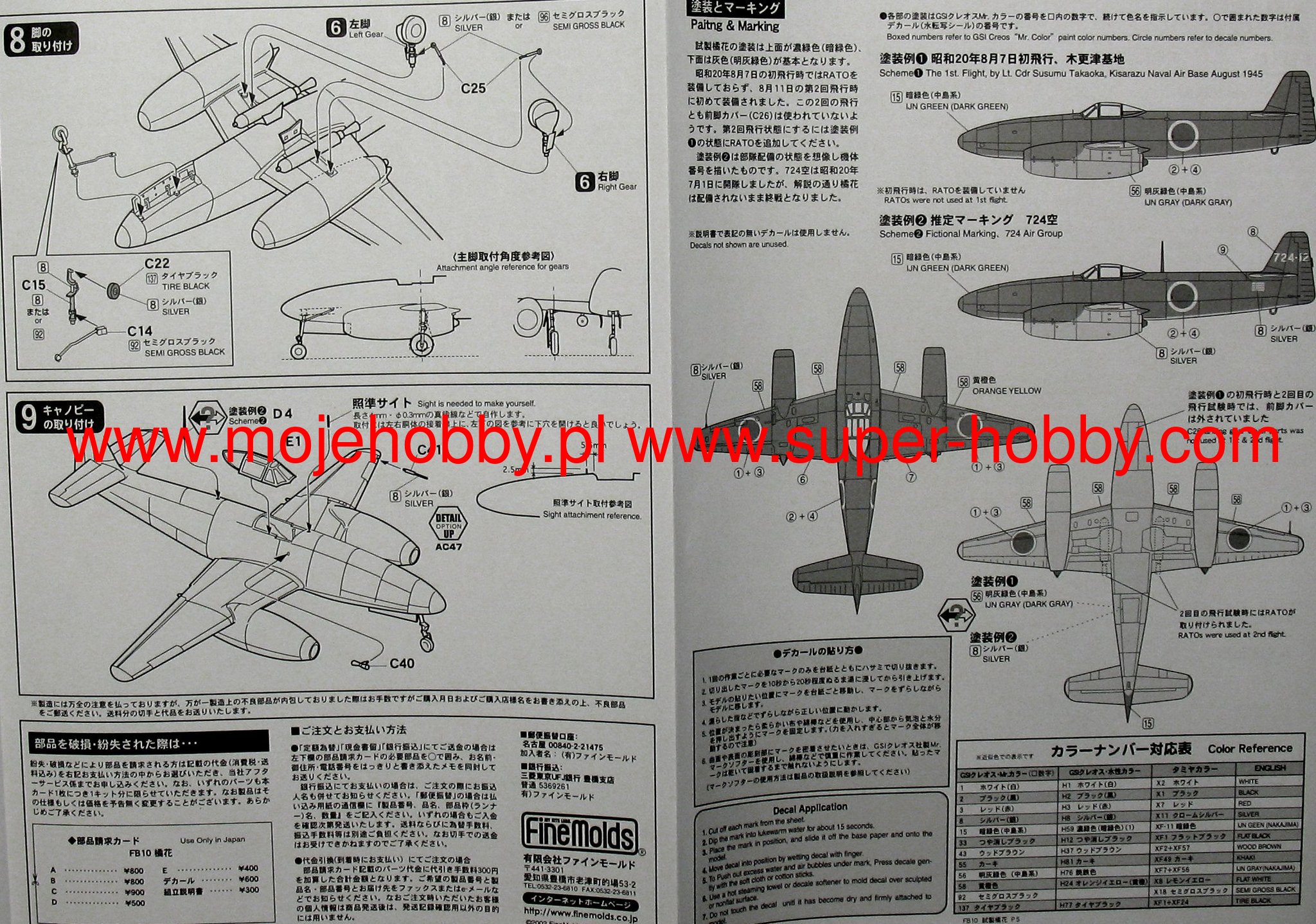The Nakajima J9Y Kikka (Japanese orange blossom) was a Japanese prototype low-wing jet fighter with an all-metal construction from the Second World War. The drive was provided by two Ishikawajima Ne-20 engines. The prototype flight took place in August 1945 - the machine never entered mass production. The on-board armament was to consist of two 30mm Type 5 cannons, and the machine was to carry a load of 500-800 kg bombs. The great performance of the German Me-262 jet fighter during the first flights, and which the Japanese armed forces learned about thanks to his military attaché at the embassy in Berlin, led to the commencement of work on the Japanese equivalent of this aircraft in September 1944. In order to shorten the research and development time, elements of A6M Zeke and P1Y Ginga airplanes were used. The new plane was smaller than its German counterpart, and also did not have a triangular fuselage section. The Nakajima J9Y was powered by a copy of the German BMW 003 engine, which was designated Ishikawajima Ne-20. The machine did not take off for its first flight until August 1945 and, due to the short-term end of World War II, it never entered mass production.