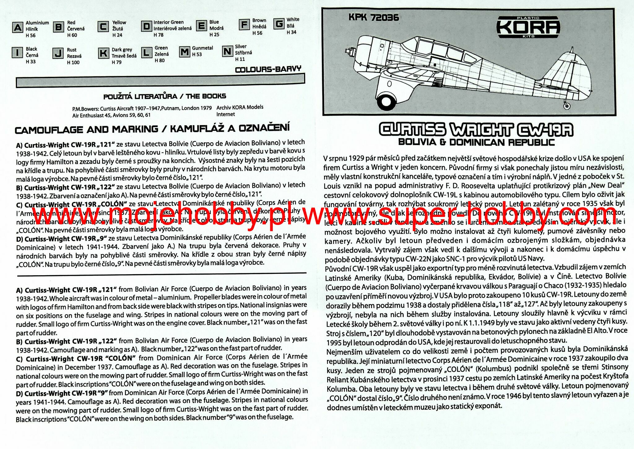 KPK7236 CURTISS WRIGHT CW-19R BOLIVIAN AND DOMINICAN SERVICE kora models 1/72