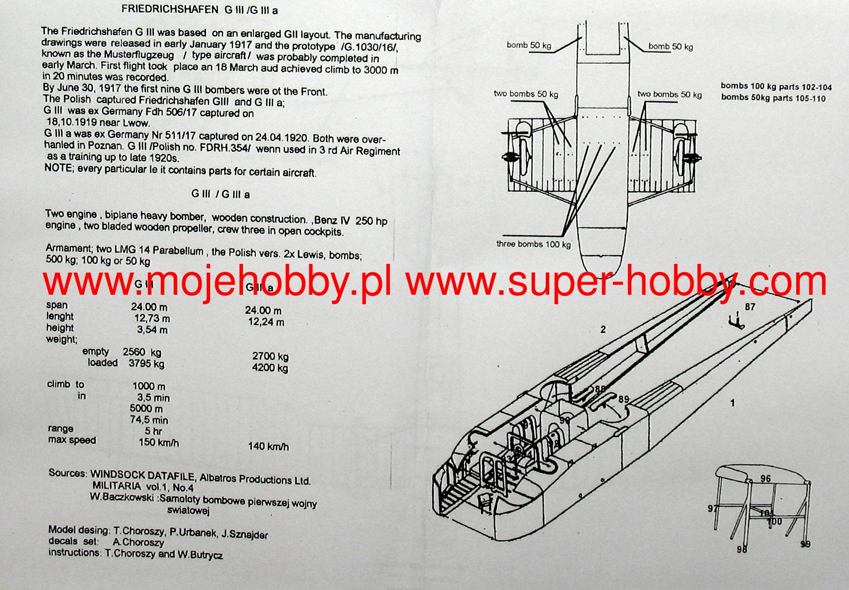 The Friedrichshafen G.III was a WW1 German bomber bomber. The flight of the prototype took place in 1917, and serial production continued in 1917-1918. In total, about 340 examples of this aircraft were built. The length of the machine was 12.8 meters with a maximum wingspan of 23.7 meters. The drive was provided by two Mercedes D.IVa engines with 260 HP each. The deck armament consisted of 2-3 7.92 mm machine guns. The machine could also carry a load of bombs weighing up to 1,000 kilograms. The Friedrichshafen G.III was created as a development of the previous aircraft of the same aviation company - the less successful G.II. The G.III machines turned out to be very successful, characterized by a good load capacity of bombs (for those times!), High solidity of the structure and relatively low susceptibility to failures. They were also able to operate from field airfields without major problems. In the course of production, in 1918, a version of the G.IIIa with a changed shape of the horizontal and tail fins was created. Friedrichshafen G.III bombers were used primarily on the Western Front. A trace number of these machines also served in the Polish aviation in the years 1918-1920.