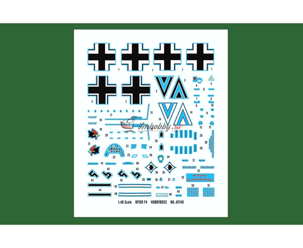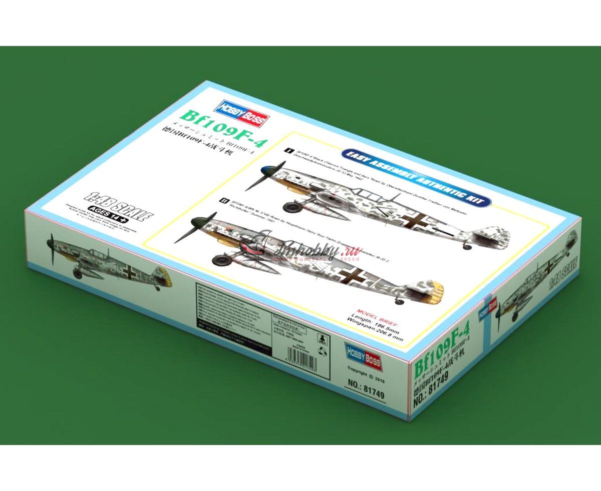 Сборная модель самолета Bf109F-4 в масштабе 1:48 от Hobby Boss. Характеристики модели:Длина - 186,5 ммРазмах крыльев - 206,8 ммКол-во деталей - 60+ штМасштаб - 1:48Декали в комплекте.Шины - пластик. Внимание! Краски и клей в комплект не входят.