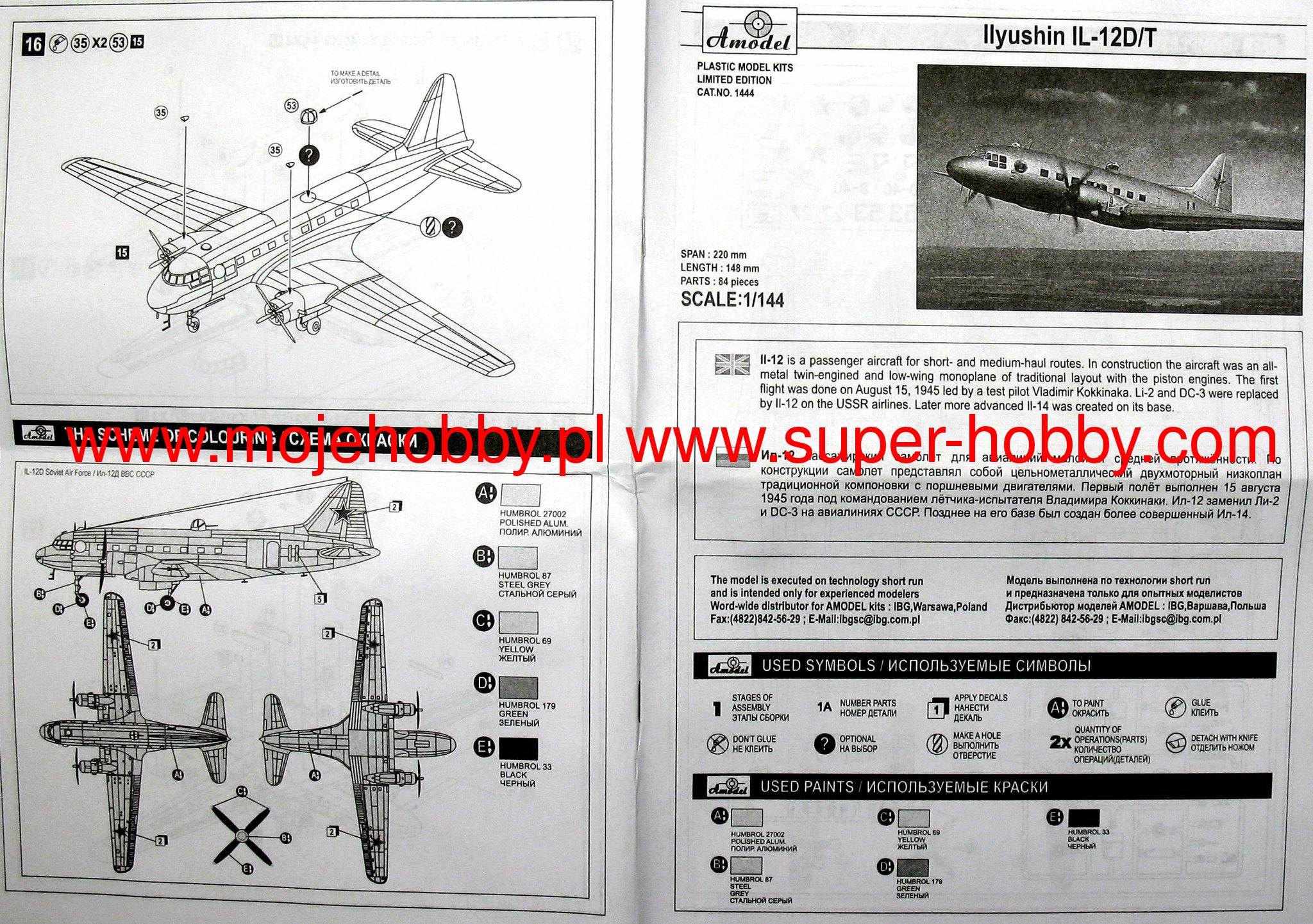 Ilyushin Il-12 (NATO code: Coach) was a Soviet, low-wing, twin-engine passenger and transport plane from the Cold War period. The drive was provided by two motors Szwecow ASz-82 FN, 1850 HP each. The flight of the prototype took place in 1945, and serial production continued in the years 1946-1950. In total, about 660 copies of this aircraft were built. Ilyushin Il-12 was developed to replace Li-2 aircraft in both military and civil aviation. Despite the fact that the machine entered serial production, it was underdeveloped and was characterized by high operating costs, a relatively small passenger cabin and emergency engines. In general, the plane was not very liked by its crews. In the course of serial production, three main development versions were created: Ił-12B (version with an enlarged passenger cabin), Ił-12T (a transport version capable of rising into the air with a load of 3.5 tons) and Ił-12D (version adapted to transport of paratroopers). Il-12 planes were used by countries such as Czechoslovakia, the PRC, Poland and the USSR.