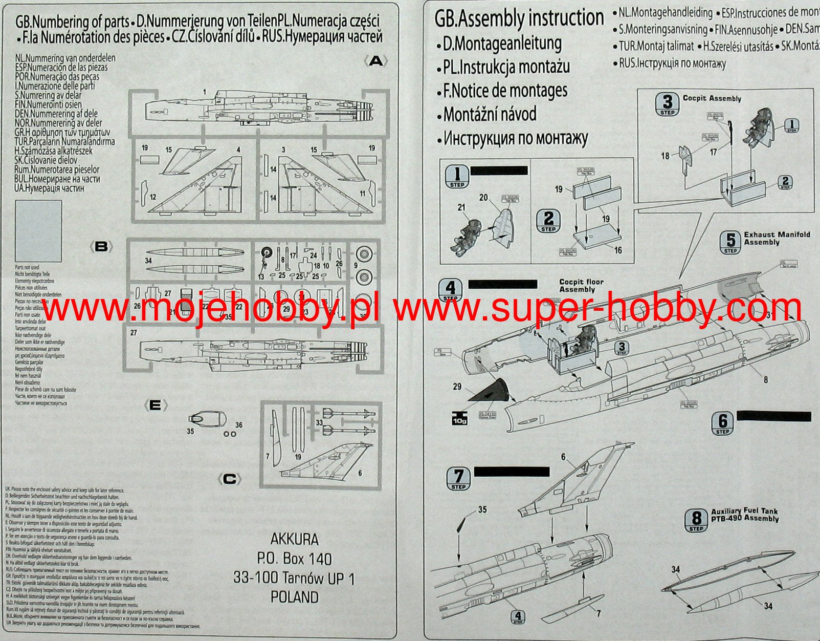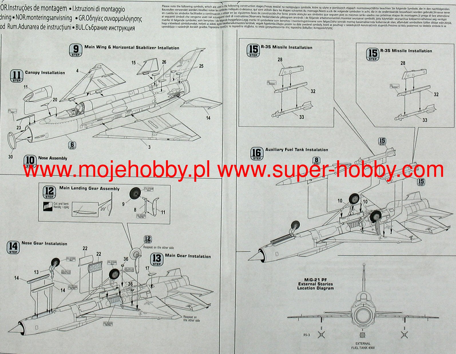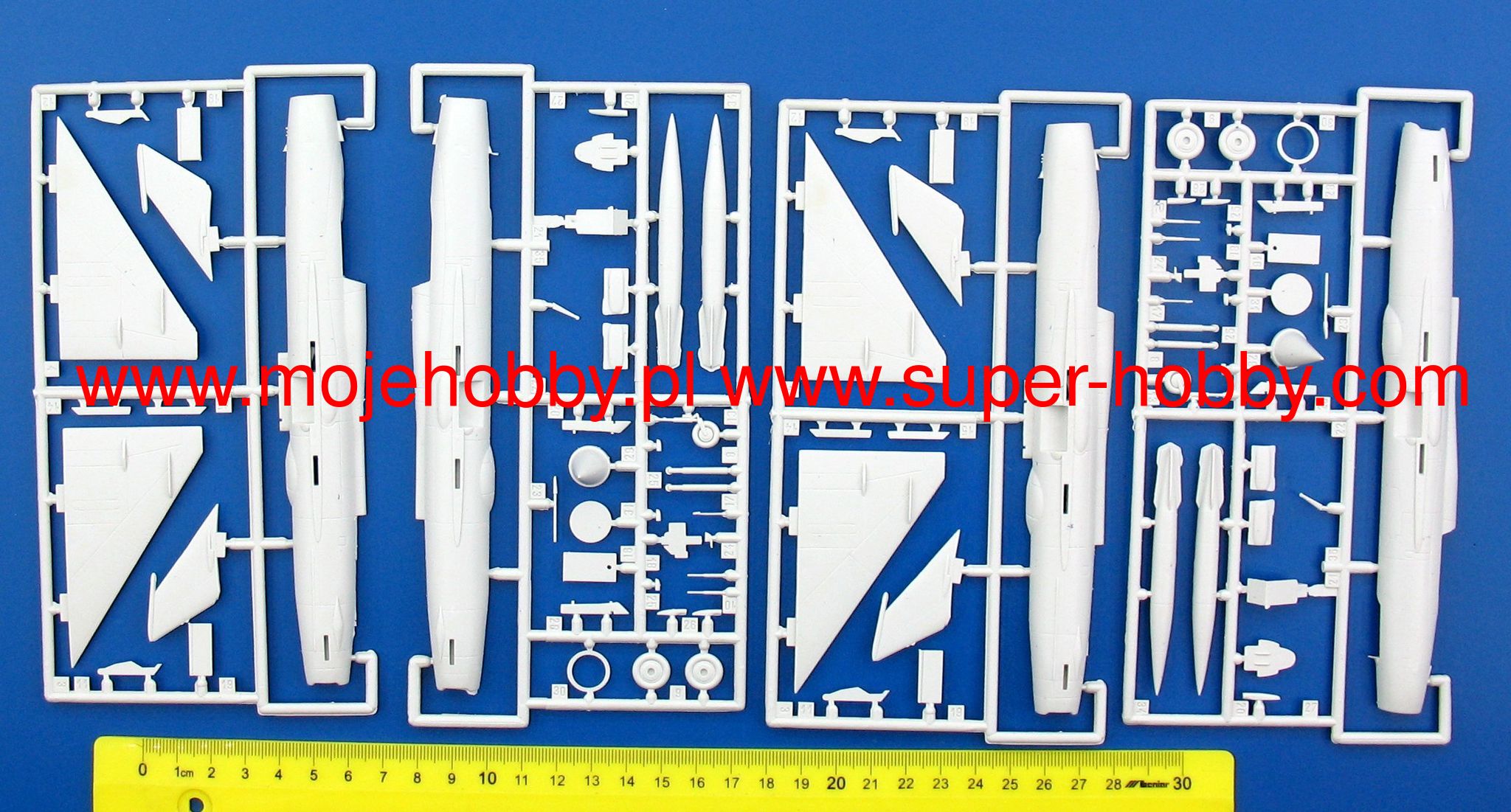 The Mikojan-Guriewicz MIG-21 (NATO: Fishbed) is a Soviet light fighter with a duralumin, half-shell structure, in a mid-wing design, with a delta blade with a 57-degree slope. The prototype flight took place on June 16, 1956. The prototype of the MIG 21 is considered to be the E-5 prototype powered by the RD-11 engine. After its flight, several other prototypes were created, which, incidentally, were breaking various international airspeed records. The experience gained from them was used to improve the E-5, and finally the aircraft was sent to mass production as the MIG-21F-13 in 1959. There are over a dozen basic versions in production, and along with various subversions, the number of MIG 21 types can be estimated at several dozen! The most important of them is the first mass-produced MIG-21F. It replaced the MIG-21PF version with the RP-21 radar and the R-11F2 engine. The next development version is the MiG-21R, i.e. a reconnaissance aircraft. Several training versions were also created, the first of which is the MiG-21U-400. The MIG-21 turned out to be a very successful design, with great performance, easy to pilot and cheap to produce. The quality of the construction is evidenced by the fact that in the 90s there were development versions of this aircraft, which was more than 30 years old. The machine was exported to all countries of the former Warsaw Pact and the entire multitude of Arab and African countries. The MIG-21 took part in most of the armed conflicts of the 1960-1980 period, including in the Vietnam War, in the Six Day War (1967), in the Iran-Iraq War (1980-1988). Technical data: length: 13.46m, wingspan: 7.15m, height: 4.1m, maximum speed: 2130km / h, climb speed: 120m / s, maximum range: 1100km, maximum ceiling 19000m, armament: fixed - single 23 mm GSz-23 cannon (M version), suspended - up to 2000 kg of cargo.