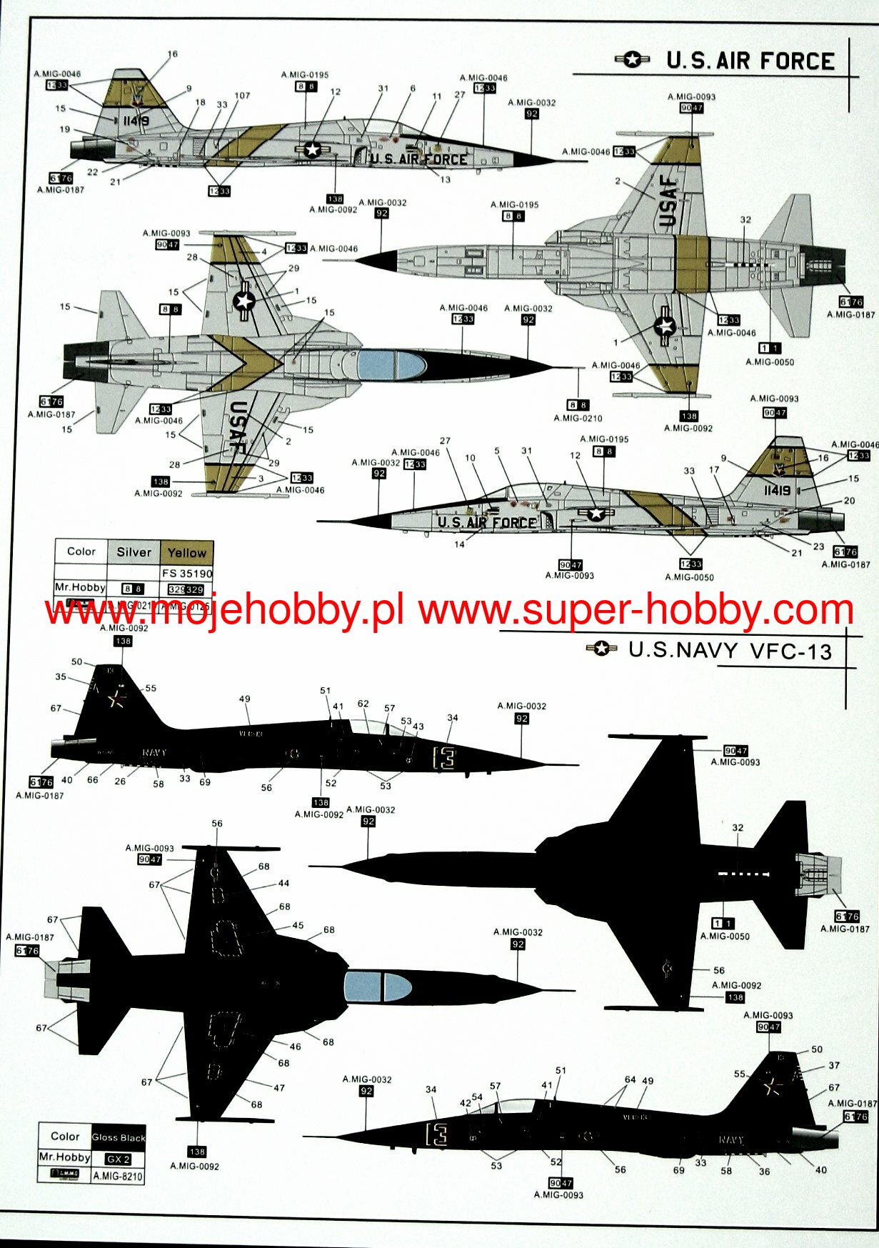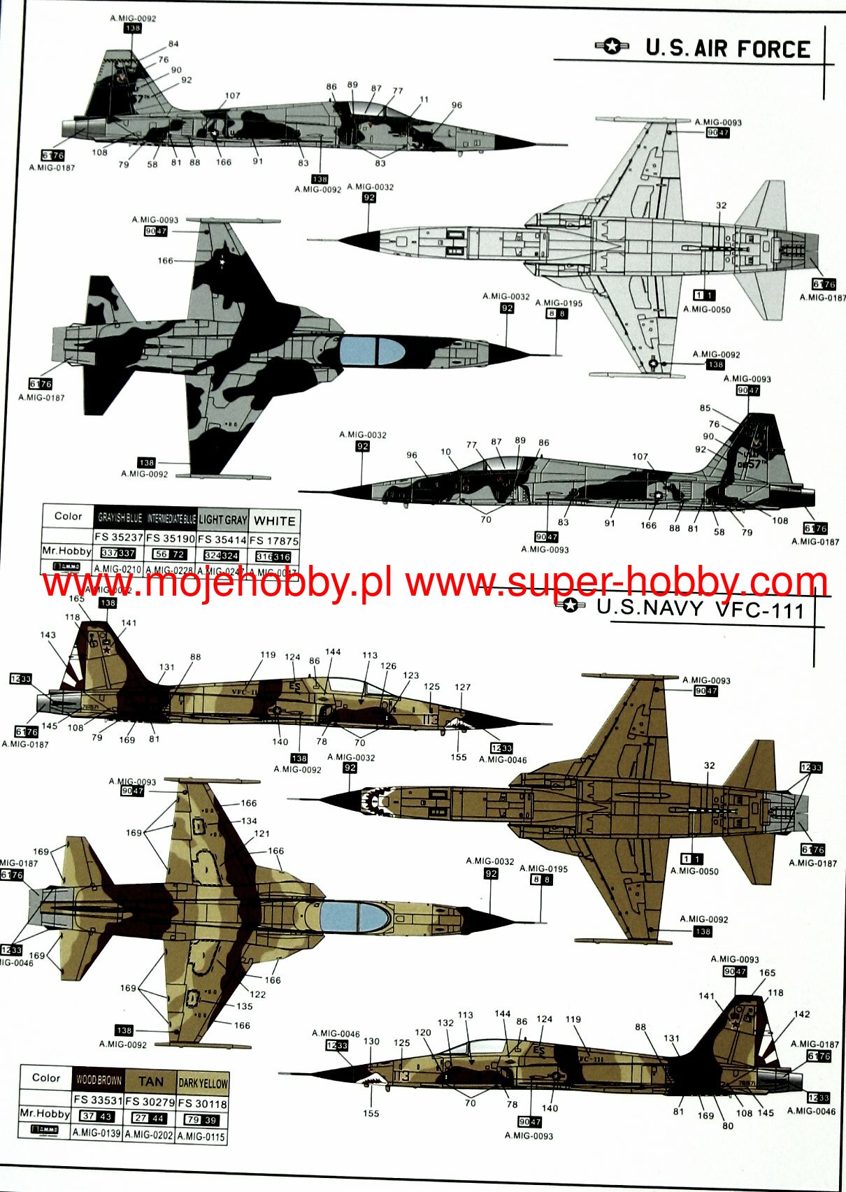 The F-5 is a legendary fighter plane designed and built by the American company Northrop, which in the 1960s was the only manufacturer of combat aircraft to offer a light and cheap fighter. The F-5 was produced in two versions; single-seat, fighter designated F-5A and two-seat, training and combat F-5B. The F-5 was much smaller than modern fighters weighed about a third of the weight of the popular F-4 Phantom. It owed such a small size to the engines used in it. Northrop's designers saw early progress in the development of small turbojet engines that were built for guided missiles and unmanned aerial vehicles. They found these engines to have a favorable thrust-to-weight ratio, and because they were also relatively small, they could be used in a twin-engine airplane, thus ensuring greater propulsion reliability. The plane did not have complicated avionics and electronics, so preparation for the mission and inspections did not require a lot of work. As a result, the combat readiness factor of units armed with these machines was very high, especially in comparison with other supersonic planes from that period. The F-5 had relatively simple equipment, which limited its combat capabilities, but nevertheless the machine was a reasonable compromise between price and value. It provided the aviation of poor countries with considerable defensive and offensive potential. Northrop's designers tried to build the smallest fighter possible. The F-5A was armed with two 20mm M39A-2 cannons mounted in the nose of the machine, and the ammunition supply was 280 rounds per gun. The procedures for accessing, maintaining and replenishing ammunition did not cause any problems, as were other maintenance activities. All the teams were within the reach of the armorer standing on the ground. It was similarly simple to adjust the setting of the cannons so that their series converged at a specific point in front of the machine. Basic tools were enough to do this. The theoretical rate of fire of the cannons was 1500 rounds per minute. Even a short burst of this weapon could have devastating effects. The wingtips are designed to hang the Sidewinder missiles, a formidable air-to-air weapon. The F-5 is stable and has good piloting properties, so you get great accuracy when firing cannons. Unlike the F-5A, the two-seater version of the Freedom Fighter F-5B was not armed with cannons, but like the single-seater version, it had seven suspension knots for various weapons and additional fuel tanks. The F-5 has proven itself many times in attacks against ground targets, it was maneuverable both at low and high speeds, had good visibility from the cabin, was very stable. When the F-5 entered service in 1964, it was immediately successful: 85 percent. The combat competitions held at that time resulted in the success of this little fighter. In January 1971, due to the modifications made, the F-5A / B was renamed the F-5E, better known as the Tiger II. Two years later, the two-seater version of the Tiger II also appeared, designated the F-5F. In the E / F version, this plane is used as an introductory plane, after which the pilots change to the F-18. Since 1994, Northrop Grumman and USAAF have been cooperating intensively to further upgrade the airframe, avionics and cockpit of the F-5E / F. As a result, Northrop Grumman is prepared for the modernization of F-5A / B aircraft in the next four stages or immediately to the highest standard known as Tiger IV. The improvements concern equipping the aircraft with a multi-range radar (e.g. APG-66), combat mission computer, multifunctional imaging systems in the cabin, HUD, navigation system, on-board oxygen generation installation, ejection seat, weapons management system, modern flight control systems, as well as replacements airframe elements made of lighter or stronger materials. The F-5 also offers elements such as combat mission software borrowed from the F-20, more powerful engines. You can even order a wing replacement, making it possible to hang Maverick missiles. There are and will be many more possibilities for modernization, because Northrop / Grumman engineers are constantly working on it. So it's no surprise that the F-5 is one of the most successful export products in the history of the US aerospace industry. Technical data (for the F-5A version): Maximum speed: 1.4 Ma, rate of climb: 146 m / s, practical ceiling: 15550 m, maximum range: 2520 km, armament: two 20mm M39A-2 cannons, Suspended - up to 2,800 kg of bombs and rockets.