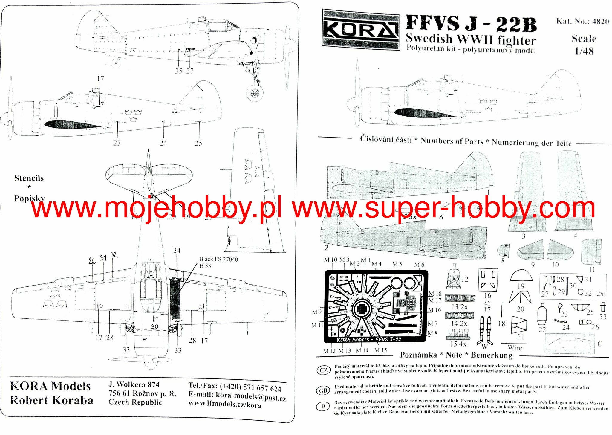 The FFVS J-22 was a Swedish fighter aircraft from World War II and post-war in the low wing configuration. The drive - in the J-22-2 version - was provided by a single SFA STWC-3G engine with a capacity of 1065 KM. The flight of the prototype took place in 1942, and in the years 1942-1946 about 200 aircraft of this type were produced. The deck armament - in the J-22-2 version - consisted of four 13.2 mm Browning M / 39A machine guns. At the outbreak of World War II, the Swedish air force had obsolete fighter biplanes, such as the Gloster Gladiator. To change this state of affairs, it was decided to order a large batch of relatively modern machines from the USA, but after the occupation of Norway by Germany in 1940, import turned out to be impossible. This made it necessary to develop our own construction, the work on which was entrusted to the newly established FFVS plant based in Stockholm, especially for this task. Ultimately, the J-22 turned out to be a successful machine, easy to pilot, with great maneuverability - especially at low altitudes. It was also a machine very liked by pilots. In the course of serial production, three versions of the aircraft were created: J-22-1 (first production series), J-22-2 (fighter version with reinforced on-board weapons) and J-22-3 (reconnaissance version). Machines of this type were withdrawn from the line in 1952.