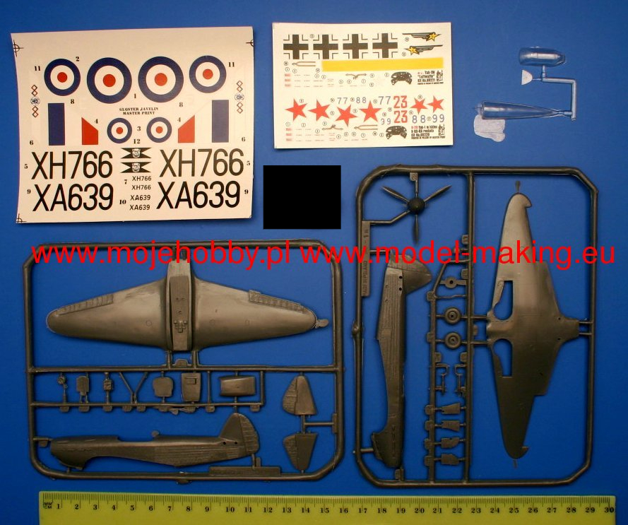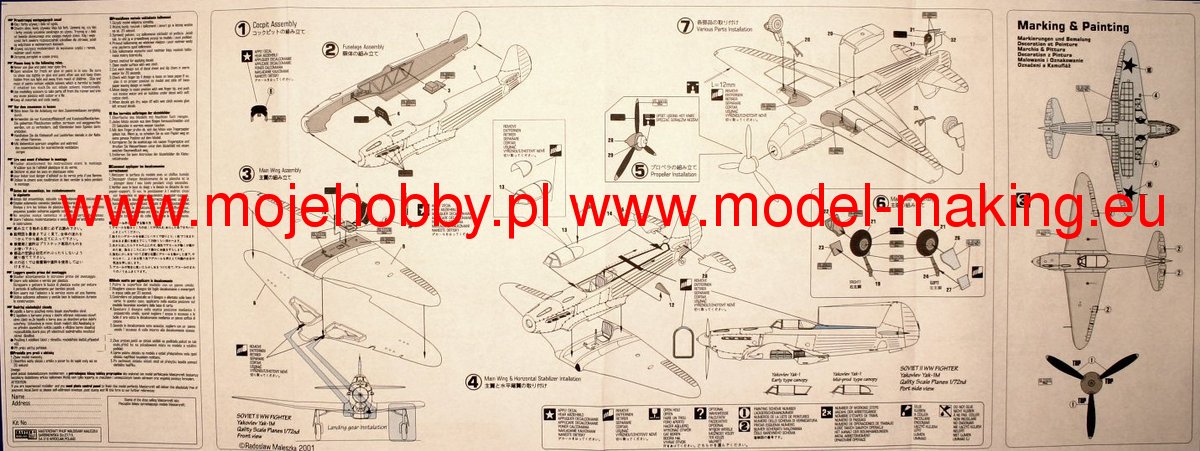 The Yakovlev Yak-1 is a Soviet, single-engine low-wing fighter with a classic tail with a mixed design from the Second World War. The Yak-1 gave rise to a whole family of fighters (Yak-3, Yak-7, Yak-9) and with them became the basic Soviet fighter in 1941-1945. Serial production continued in the 1940-1944 altos and resulted in the creation of 8,670 aircraft of this type. Yak-1 fought in almost all major battles of the Soviet-German war, especially in the counteroffensive near Moscow, the Battle of Stalingrad and the Battle of the Kursk Arch. The prototype, designated I-26, took to the air in January 1940. Serial production started in March of the same year. During the course of the war, several versions of this aircraft were created. The basic and first serial version was the Yak-1, the other was the Yak-1M - it was powered by the M-105PF engine and was characterized by a greater use of duralumin. Technical data (Yak-1b version): length: 8.5 m, wingspan: 10 m, height: 2.64 m, maximum speed: 592 km / h, rate of climb: 15.4 m / s, practical ceiling: 10050 m, maximum range: 700km, armament: fixed - 1 Berezin UBS machine gun cal.12.7mm and 1 cannon SzWAK cal.20mm. Note: Comany Mistercraft frequently changes, without any notice, the decals that come with the model, so they may differ from the photos and descriptions on our website. If you need a specific version, please let us know about that by entering the appropriate notice in the comments field when placing the order.