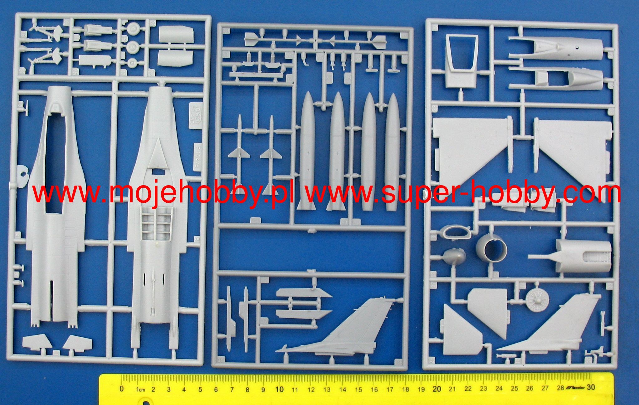 Note: Comany Mistercraft frequently changes, without any notice, the decals that come with the model, so they may differ from the photos and descriptions on our website. If you need a specific version, please let us know about that by entering the appropriate notice in the comments field when placing the order. The General-Dynamics F16 Falcon is an American single-engine, multi-role light fighter and stormtrooper. Work on the F-16 project began in 1971 at the General Dynamics concern (which in 1993 was part of the Lockheed Martin giant), entering the competition for a light multi-purpose fighter (LWF) for the US Air Force. The YF-16 prototype first flew on February 2, 1974. A breakthrough in technical terms was the use of a computerized electric fly-by-wire control system, which made it possible to reduce the area of the wings and tail, and thus reduce the weight of the entire aircraft. The F-16 was the first fighter in the world to use such a system. The first versions were to a large extent made of aluminum alloys (about 83% of the total structure), but with time they gave way to composites. The different versions of the F-16 are powered by three versions of the engines: Pratt-Whitney F-100-PW-200, General Electric F110-GE100 and Pratt-Whitney F-100-PW-2020. The "brain" of the guidance system was the APG-66 radar, later replaced by the APG-68 (V) radar. It is worth noting that the YF-16 design turned out to be so successful that it won not only the LWF competition in the USA (in competition with the Northrop YF-17 aircraft), but also won the centenary contract for a multi-role fighter for European NATO countries. His rivals were the Dassault Mirage F.1 and SAAB J-37 Viggen machines. Serial production of the F-16 began in 1975. It was also attended by European NATO countries for which it was an injection of new aviation technologies. Final assembly was performed in the USA, Belgium and the Netherlands. The first serial F-16A Fighting Falcon was flown on August 7, 1978. It is an assault version of the F-16, intended primarily to counter ground targets. The F-16 also proved itself in combat, with a series of air victories in the war in Lebanon (1982) and during the Operation Desert Storm (1991). By the end of the 20th century, more than 4,000 of this successful aircraft had been produced. There were six basic versions of the F-16, marked as A, C, E (single-seater) and B, D, F (two-seater). On the basis of these six models, numerous upgrades are created, most often associated with the replacement of avionics, marked as "Block". Since 2006, the F-16 also serves in the Polish aviation. The Polish Ministry of Defense decided that the F-16 would be the backbone of the modernized air force, rejecting offers from Dessault and SAAB, although in this case they were Mirrage F2000 and JAS-39 Grippen fighters. Undoubtedly, the highest sum proposed by the American company as part of the so-called offset transaction. Technical data: Maximum speed: 2,170 km / h, rate of climb: 254 m / s, maximum ceiling 15240m, maximum range: 3890km, armament: fixed - one 20mm six-barrel M61A-1 cannon, suspended - up to 9275 kg of cargo.