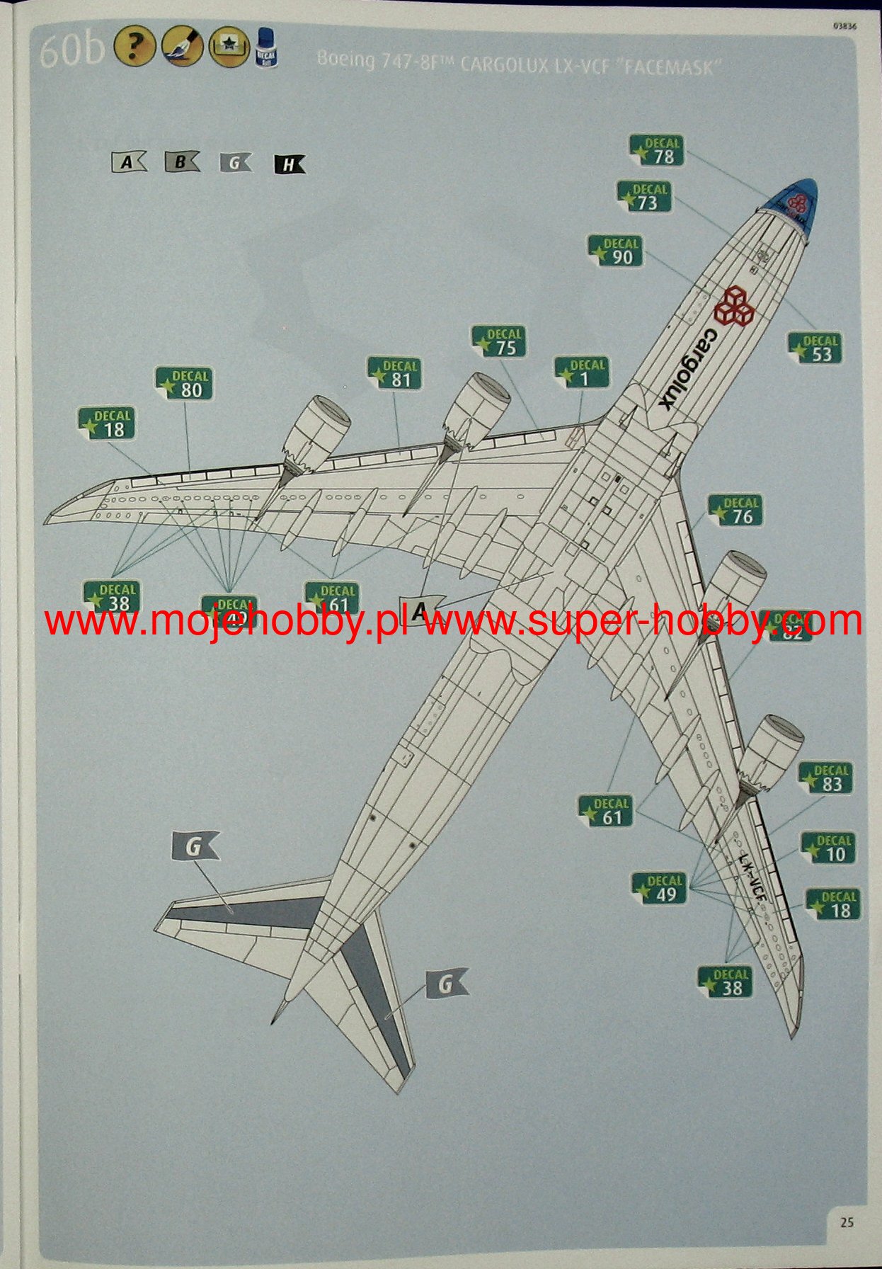 Набор из пластиковых деталей для сборки модели самолета Boeing 747-8F CARGOLUX LX-VCF "Facemask". Масштаб модели 1:144. Для сборки необходим модельный клей для пластика. Собранная модель нуждается в покраске. Внимание! Клей и краски в комплект не входят!