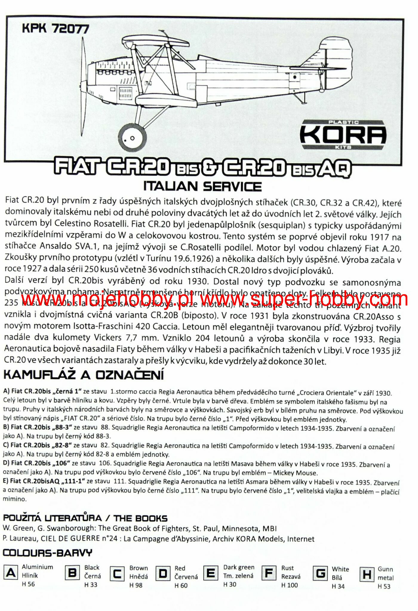 KPK7277 FIAT C.R. 20BIS ITALIAN SERVICE kora models 1/72