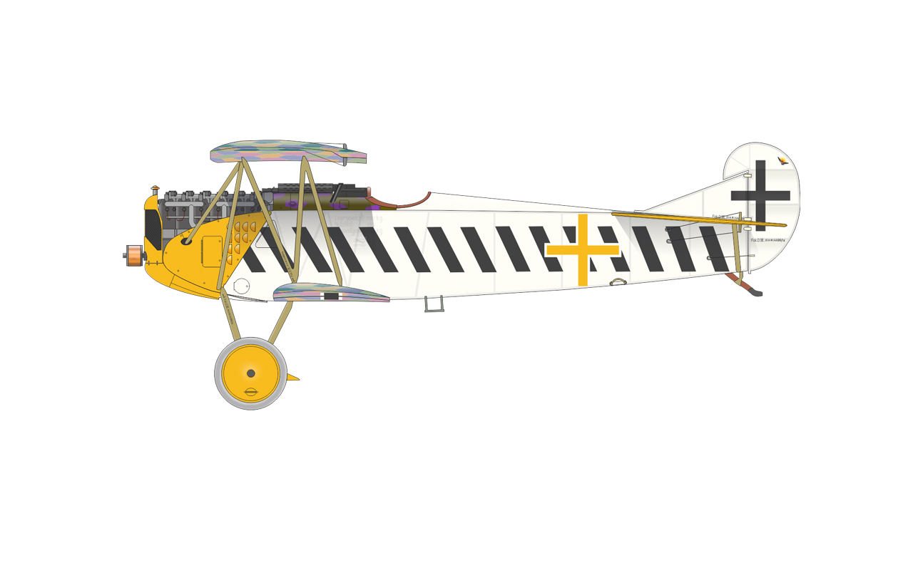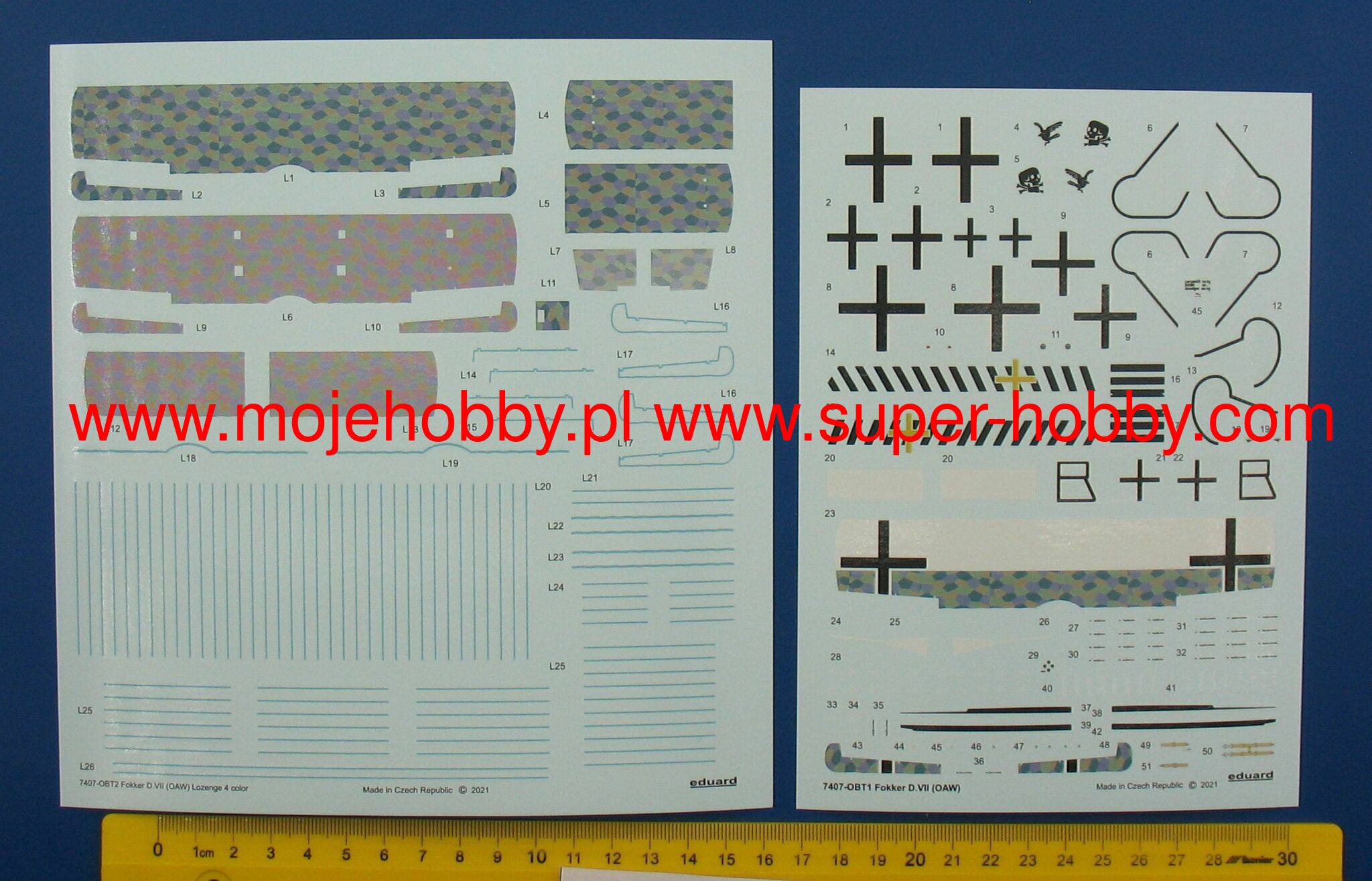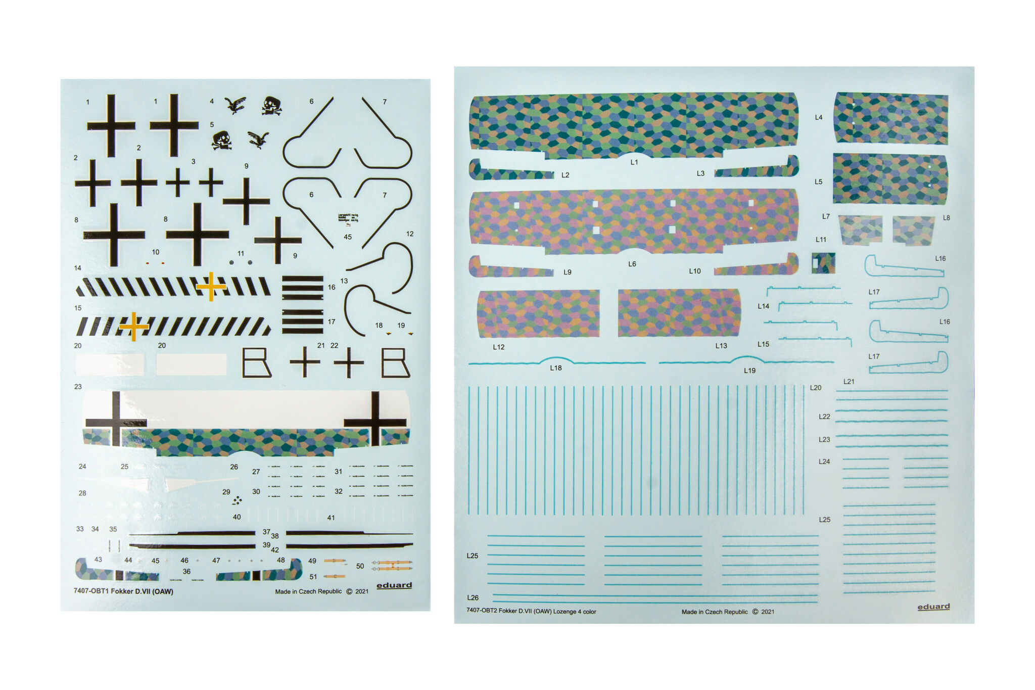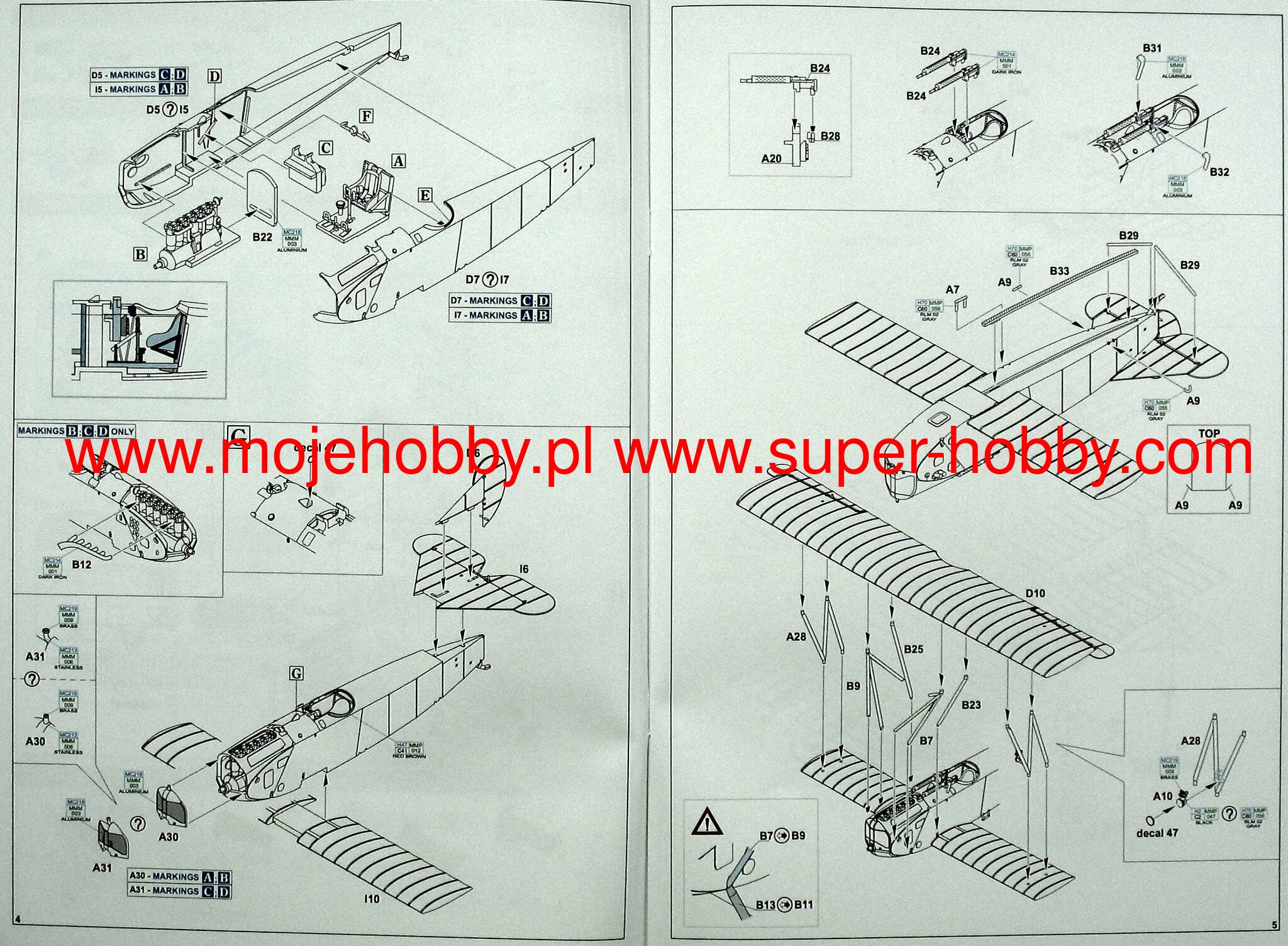 The Fokker D.VII is a German biplane fighter with a mixed structure (plywood, canvas, aluminum) from the end of the First World War. The flight of the prototype took place in January 1918, and in May of the same year, the plane entered service in the air. The Fokker D VII quickly demonstrated its superiority over the Allied aircraft. It had higher acceleration and a higher ceiling, which, combined with very good control devices, made the German pilots able to defeat 565 Allied machines in August 1918. Designed by Reinhold Platz, D VII was selected from among many other designs during the competition between January-February 1918. Baron Manfred von Richthofen (known as the "Red Baron") himself flew a prototype marked with the code V11. He later stated that the plane was easy to navigate, had a good climb rate, and was suited to "dive" flights in which the Fokker was found to be "rock hard". Other pilots also emphasized good visibility from the cockpit. The plane was of a mixed construction. The rectangular hull was made of welded steel pipes with a cloth cover. Only the nose of the fuselage housing the engine had removable side covers made of aluminum sheet. Double-girder panels, connected with each other by thin N-shaped stands, free-bearing with a thick profile, covered with plywood up to the first girder, the rest with canvas. The plane used Mercedes D.IIIa (180-200HP) or BMW IIIa 185HP engines as the drive. The BMW engine was a much better power unit, but as a result of limited production, the Mercedes engine was used on a much larger scale. It is worth noting that the Fokker D.VII flew min. Herman Goring, who achieved many air victories on it. The quality of the machine can be proved by the fact that it was produced until 1926. Technical data (for the version with the BMW-Fokker D.VIIF engine): length: 6.95 m, wingspan: 8.9 m, height: 2.75 m, maximum speed: 200 km / h, climb speed: 9, 52 m / s, maximum ceiling 6000 m, armament: fixed - 2 LMG 08/15 machine guns, cal. 7.92 mm. 3_edu7407_instruction_sheet.pdf