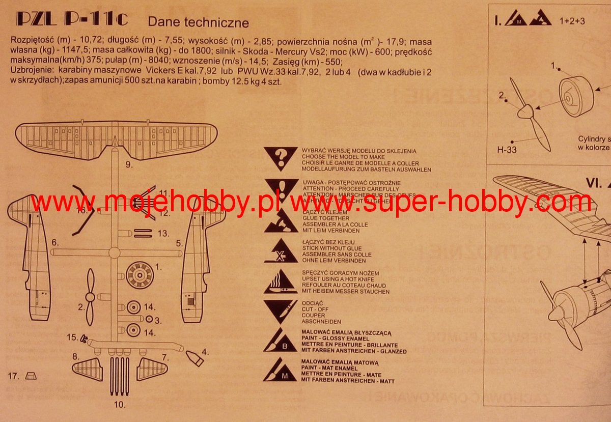 The PZL P.11a (the so-called eleven) is a Polish, single-engine fighter plane with a metal structure with Puławski wings, a classic tail and a fixed landing gear. The flight of the prototype took place in 1931, but serial production continued in 1937-1939. The first serial version is the PZL P.11a powered by the Bristol Mercury IV S2 engine with a power of 550 HP. However, it was treated as a transitional version and only 50 were ordered. The most famous version of the "eleven" - PZL P.11c - appeared in the summer. It had an improved fuselage, wings and a vertical stabilizer. It all improved the aerodynamics of the plane. The drive unit has not changed. The interest in the construction was expressed by, among others, Romania, where 95 units of the licensed PZL P.11 were manufactured at the IAR plants. At the outbreak of the war, all versions of the P.11 were much slower than their German opponents, but at the same time had greater maneuverability, high rate of climb and a less emergency engine than German planes. They had many victories over the enemy during the September campaign, mainly as part of the Pursuit Brigade. Technical data (version P.11c): length: 7.55m, wingspan: 10.72m, height: 2.85m, maximum speed: 367km / h, rate of climb: 14.5m / s, maximum ceiling: 8000m, range maximum: 550 km, armament: fixed - 2 machine guns wz.33 cal.7.92 mm.