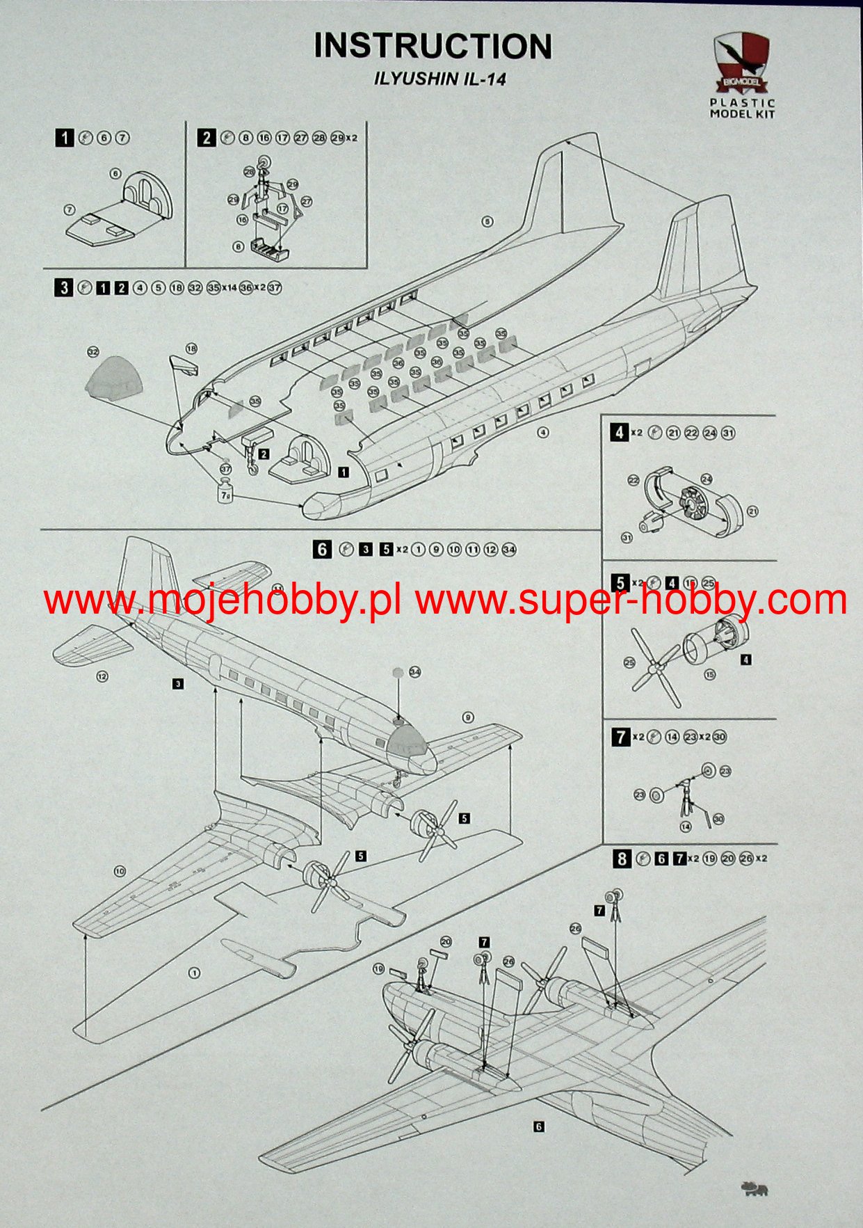 Iljuszyn Ił-14 był radzieckim, dwusilnikowym samolotem pasażerskim i transportowym w układzie dolnopłata z okresu Zimnej Wojny. Napęd zapewniały dwa silniki Szwecow ASz-82 T o mocy 1900 KM każdy. Oblot prototypu miał miejsce w 1950 roku, a produkcja seryjna trwała w latach 1950-1960. Maszyna cechowała się prędkością przelotową na poziomie 300 km/h przy zasięgu maksymalnym 1000 kilometrów. Iljuszyn Ił-14 został opracowany jako ulepszona i zmieniona wersja maszyny Ił-12. W stosunku do swego poprzednika nowy samolot posiadał co prawda ten sam kadłub i podwozie, ale otrzymał nowe silniki, skrzydła i nowy kształt usterzenia poziomego. Zmiany te poprawiły niezawodność maszyny, poprawiły jej właściwości lotne, jak również pozytywnie wpłynęły na ekonomiczność eksploatacji. W toku produkcji seryjnej powstało kilka wersji rozwojowych, wśród których można wskazać m.in.: Ił-14P (wersja podstawowa), Ił-14M (wersja z wydłużonym kadłubem i powiększoną kabiną pasażerską), Ił-14T (wersja transportowa) czy Ił-14D (wersja przystosowana do transportu spadochroniarzy). Samoloty Ił-14 były użytkowane przez takie państwa jak: Czechosłowacja, NRD, Polska oraz ZSRR. Co oprócz modelu będę potrzebować do jego sklejenia?
