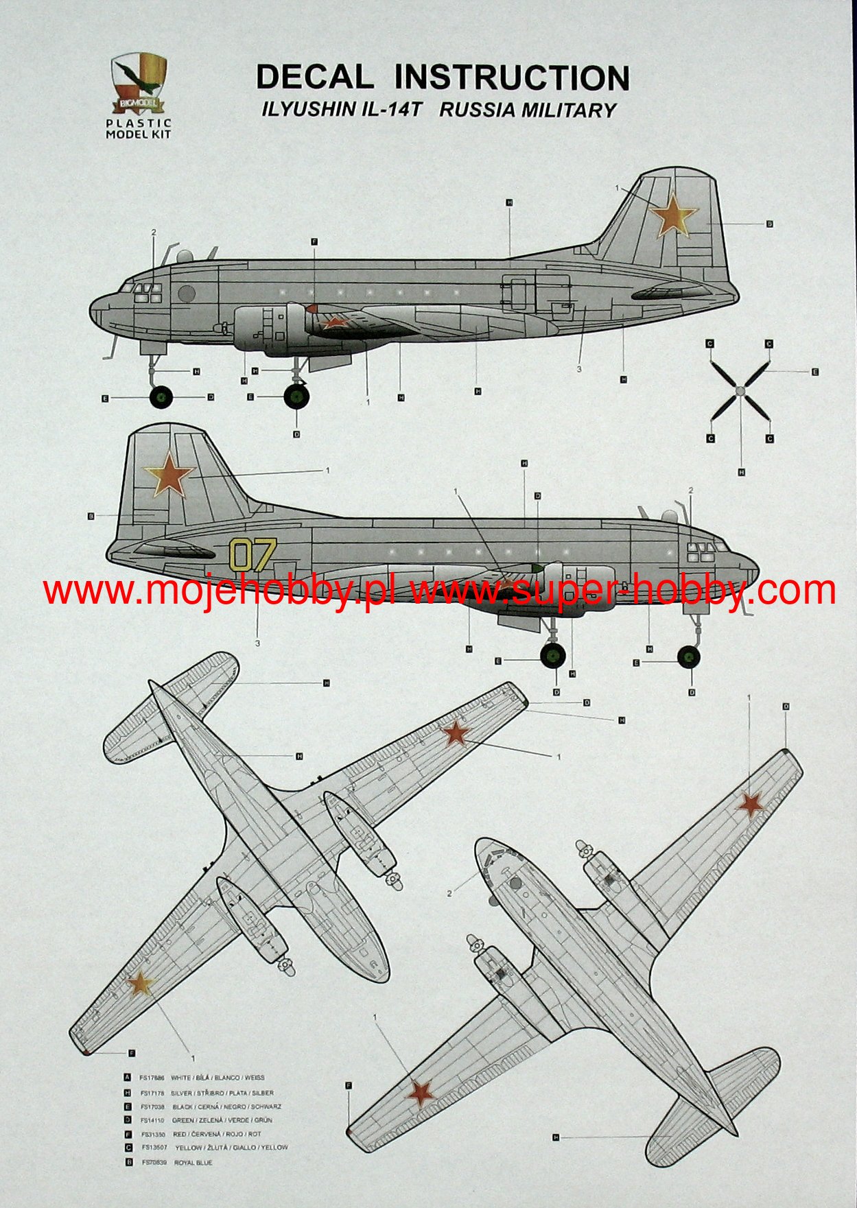 Iljuszyn Ił-14 był radzieckim, dwusilnikowym samolotem pasażerskim i transportowym w układzie dolnopłata z okresu Zimnej Wojny. Napęd zapewniały dwa silniki Szwecow ASz-82 T o mocy 1900 KM każdy. Oblot prototypu miał miejsce w 1950 roku, a produkcja seryjna trwała w latach 1950-1960. Maszyna cechowała się prędkością przelotową na poziomie 300 km/h przy zasięgu maksymalnym 1000 kilometrów. Iljuszyn Ił-14 został opracowany jako ulepszona i zmieniona wersja maszyny Ił-12. W stosunku do swego poprzednika nowy samolot posiadał co prawda ten sam kadłub i podwozie, ale otrzymał nowe silniki, skrzydła i nowy kształt usterzenia poziomego. Zmiany te poprawiły niezawodność maszyny, poprawiły jej właściwości lotne, jak również pozytywnie wpłynęły na ekonomiczność eksploatacji. W toku produkcji seryjnej powstało kilka wersji rozwojowych, wśród których można wskazać m.in.: Ił-14P (wersja podstawowa), Ił-14M (wersja z wydłużonym kadłubem i powiększoną kabiną pasażerską), Ił-14T (wersja transportowa) czy Ił-14D (wersja przystosowana do transportu spadochroniarzy). Samoloty Ił-14 były użytkowane przez takie państwa jak: Czechosłowacja, NRD, Polska oraz ZSRR. Co oprócz modelu będę potrzebować do jego sklejenia?