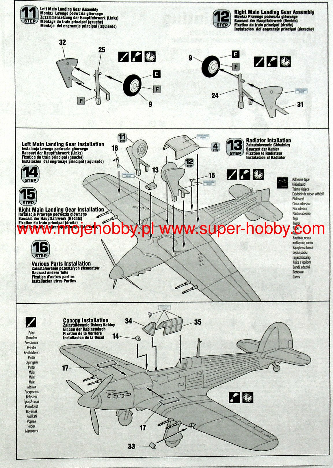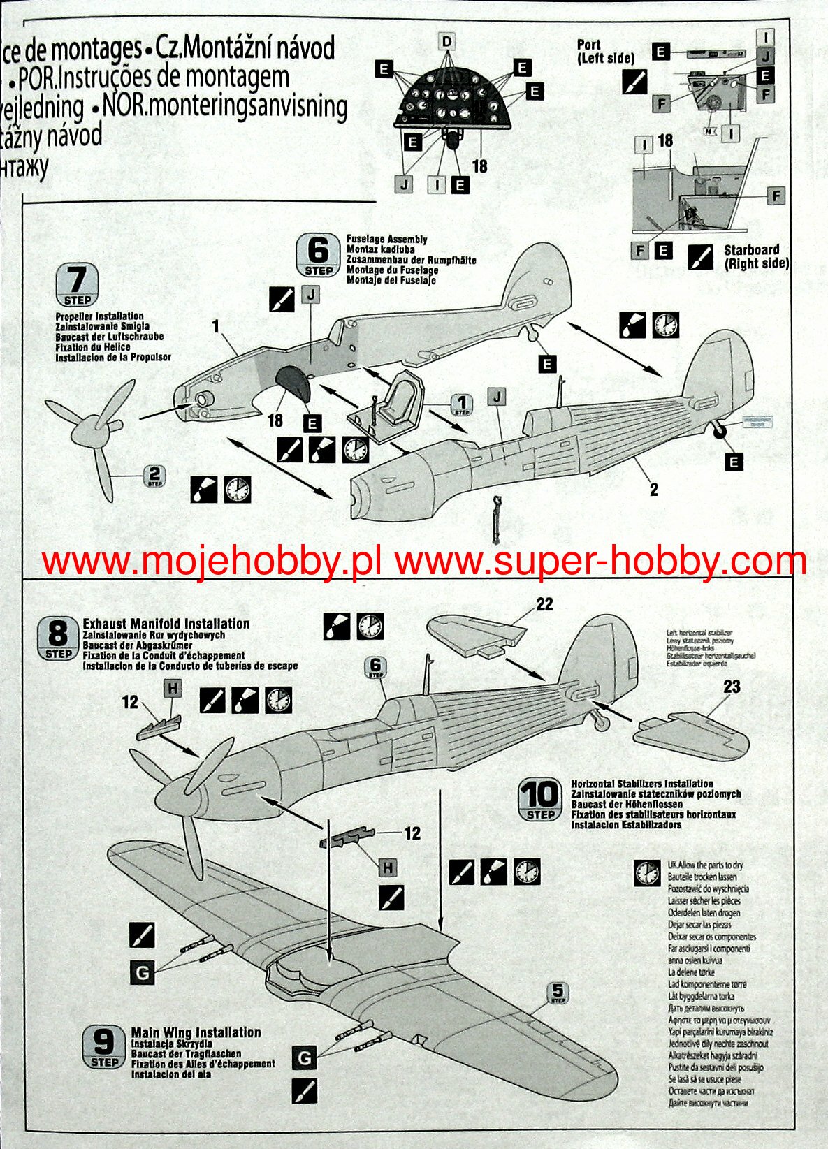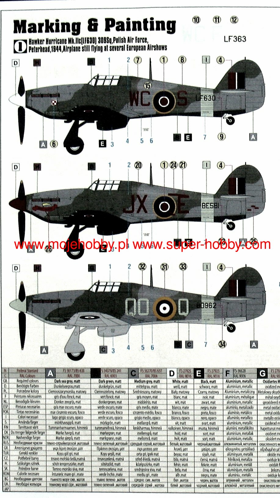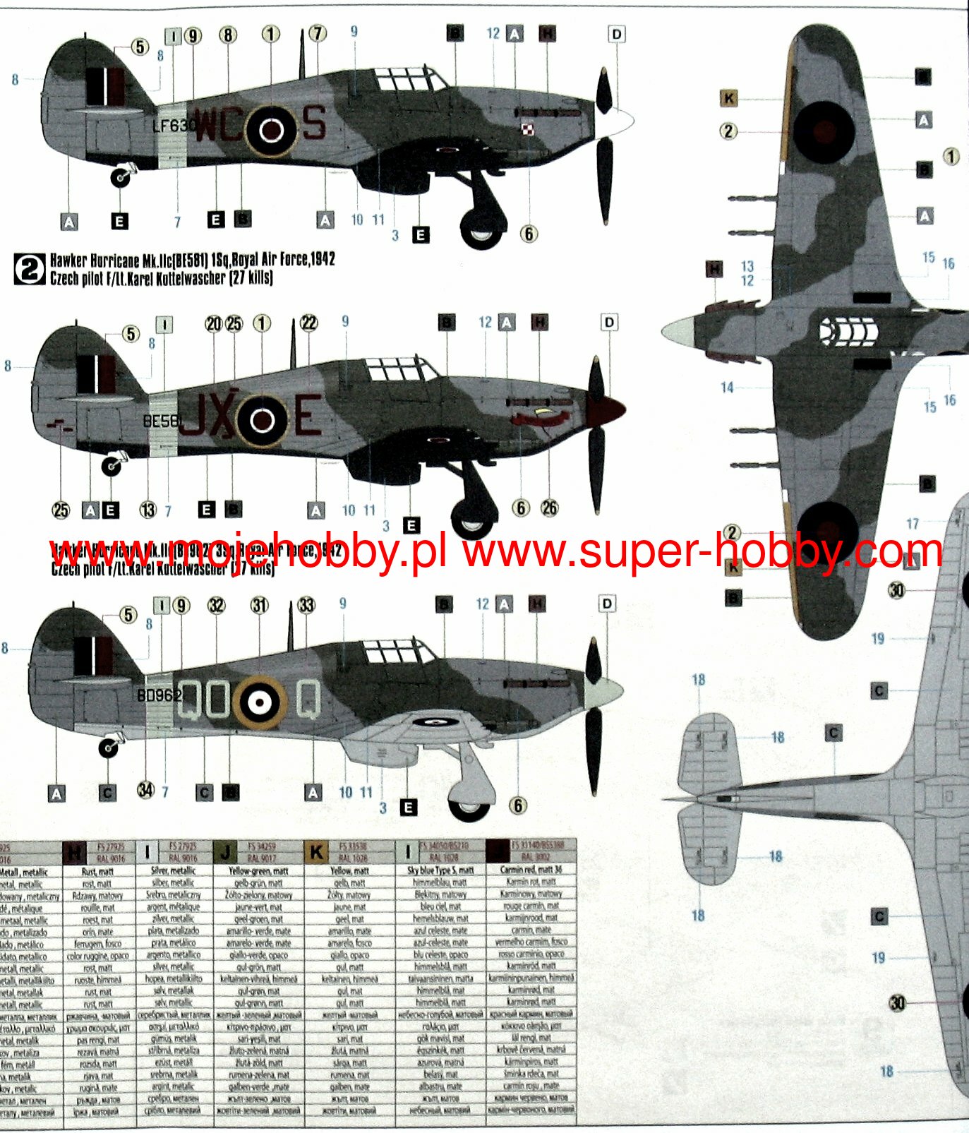 Note: Comany Mistercraft frequently changes, without any notice, the decals that come with the model, so they may differ from the photos and descriptions on our website. If you need a specific version, please let us know about that by entering the appropriate notice in the comments field when placing the order. The Hawker Hurricane is a British single-engine single-engine fighter with a metal structure with canvas elements from the Second World War. Acting on all fronts during the Second World War, the Hawker Hurricane earned the name of one of the best and most ubiquitous airplanes of that time, both as a fighter and an attack plane. Undoubtedly, however, the most significant card in the history of this machine was its contribution to the victory of the British in the Battle of Britain in 1940. The plane constructed by Sydney Camm at the request of the Ministry of Defense was supposed to become the main force of the British air fleet. For the first time, a prototype of an aircraft powered by a Rolls-Royce Merlin Mk.II engine took off on November 6, 1935, piloted by Georg Bulman. The tests were excellent and it was quickly decided to order 600 machines, the first of which entered service with the 111th squadron of the RAF in December 1937. When Great Britain declared war on Nazi Germany on September 3, 1939, the RAF had 19 ready-to-fight Hurricane squadrons, which started their military career with operations in France and Norway. During the course of the war, several versions of this very successful plane were created. The first mass-produced version was the Mk.I with the Merlin III engine. From 1940, the Mk.II versions with the new Merlin XX engine with a capacity of 1280 HP began to be delivered to the units. It was this version, as the first variant of Hurricane, that performed primarily assault and battlefield support tasks. Its best variant was the Hurricane Mk.IID, used by min. in the North Africa campaign in 1942. The third version is the Hurricane Mk.IV with the new Merlin 24/27 engine, 1620HP. It served as an assault machine armed with bombs, unguided missiles and Vickers S cannons until 1944. A sea variant (Sea Hurricane) was also produced, which served on aircraft carriers and on specially adapted merchant ships (Sea Hurricane Mk.IA). Technical data (Mk.IIC version): length: 9.84m, wingspan: 12.19m, height: 4m, maximum speed: 547km / h, rate of climb: 14.1m / s, maximum range: 965km, maximum ceiling 10,970m Armament: fixed - 4 20mm Hispano Mk.II cannons, sling - up to 460 kg of bombs.