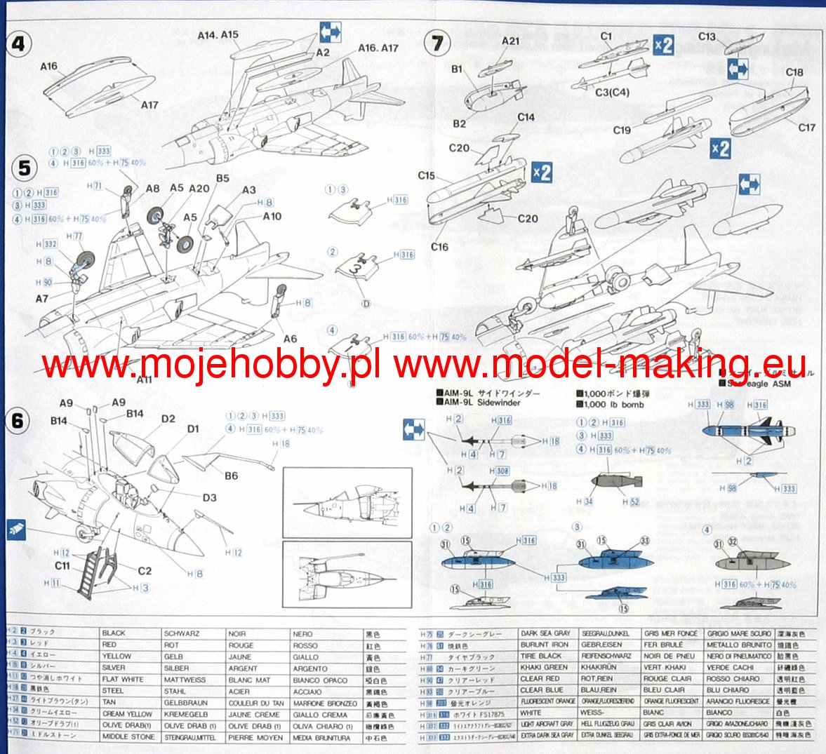 The BAe Harrier is a British single-seat V / STOL fighter, attack and reconnaissance aircraft with a duralumin, half-shell structure. The origins of Harrier's construction can be found in 1957, when Lord Sydney Camm of Hawker Aircraft and Dr. Stanley Hooker of Bristol Siddeley Engines started the construction of a tactical aircraft using the latest turbo-fan engine from Bristol plants, then known as BS.53. It was specially adapted to the vertical thrust vector ensuring the vertical take-off of a fixed-wing aircraft. Engine exhaust gases were directed to four staggered nozzles placed in pairs at the front and rear of the fuselage. The range of rotation of the nozzles exceeded 90 degrees, which allowed the exhaust gases to be directed directly rearward in normal flight, vertically downward for take-off and landing, or to any angle during the transition phase. Around the engine, Camm constructed a compact, conventional, high-wing metal airframe. In the forward part of the fuselage there was a one-person cabin, next to which there were two fixed, stationary air inlets for engines with a semicircular cross-section. The two-wheeled main and one-wheeled undercarriages are built in tandem in the central axis of the fuselage. The first of the six prototypes took off for the first time on October 21, 1960. After less than a year, a complete transition was made from vertical climb to horizontal flight and hover again. In February 1965, the UK government ordered six test aircraft. These were the first examples to be given the name Harrier. Apart from Great Britain, the only user of the standard Harrier aircraft is the Spanish Navy, where the aircraft are known as the Matador. To date, a dozen or so versions of the Harrier aircraft have been produced. Chronologically, the first was the Harrier GR.1 (an attack aircraft that entered service in 1969). Version T.3 was created quickly, i.e. a two-person school version of Harrier GR.1. The next version is the Harrier GR.3, which is the most modern assault version of this aircraft equipped with Pegasus 11 Mk 103 engines. Since 1978, the version marked as Sea Harrier has also been produced, the FRS.MK.1 model of which distinguished itself during the Falklands war. in 1982 as a fighter attack aircraft. As a result of the experience gained from this war, the FA.2 version was created, which has better avionics, including a great Blue Vixen radar, greater payload and can use a wider range of weapons. Technical data (GR.3 version): length: 14.37m, wingspan: 7.6m, height: 3.42m, maximum speed: 1185km / h, maximum climb speed: 254m / s, combat radius: 420km, armament : fixed - not equipped, suspended - up to 3176 kg of load.