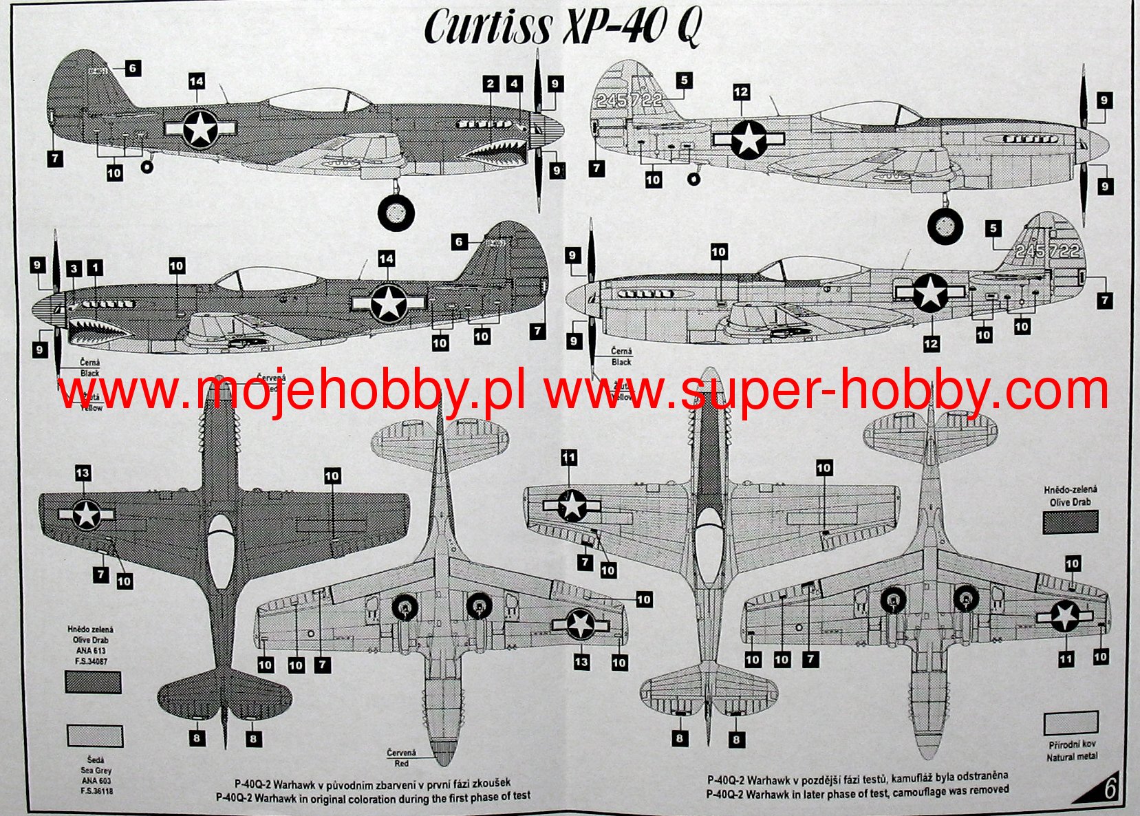 The Curtiss P-40 Warhawk is an American, single-engine, metal fighter-attack aircraft in a low wing configuration with a classic tail. The flight of the prototype took place in 1938, and serial production was carried out in the years 1938-1944. The last of the Hawk family of planes - the Curtiss P-40 Warhawk was, apart from the Republic P-47 and the North American P-51 Mustang, the most widely built American fighter. At the end of production in December 1944, the number of machines exceeded 15,000. The development of the design began in 1937, when the prototype airframe of version 75 was adapted to the installation of the 1167HP Allison V-1710-11 in-line engine. The plane became the first American construction capable of flying at speeds over 483 km / h. The version for the RAF was called the Tomahawk Mk IIA. The planes had self-sealing fuel tanks and two wing-mounted 7.7mm machine guns. The Tomahawk MkIIB were equipped with American radio hardware and armed with six 7.7mm machine guns. Some American P-40s were modernized in 1941 for reconnaissance tasks. They received the designation RP-40. Meanwhile, work on the Hawk 81-A was underway at the Curtiss facility. The changes included the installation of the Allison V-1710-39 engine with a capacity of 1167KM, providing constant power up to a height of 3563 meters, adaptation for installation in the wing of four 12.7mm machine guns and the installation of a fuselage node that could carry one bomb weighing 227 kg or thrown back additional fuel tank. The US Army placed an order for these machines in September 1940, awarding them the designation P-40D. Over the next three years, Curtiss made every effort to expand the application possibilities of the P-40, creating numerous new versions of the aircraft. Despite these efforts, Warhawk's performance was lower than that of contemporary Allied and Axis fighters. Technical data (P-40E version): length: 9.66m, wingspan: 11.38m, height: 3.76m, maximum speed: 580km / h, rate of climb: 11m / s, maximum range: 1100km, practical ceiling: 8800m, armament: fixed - 6 M2 machine guns, caliber 12.7 mm, suspended - up to 900 kg of cargo.