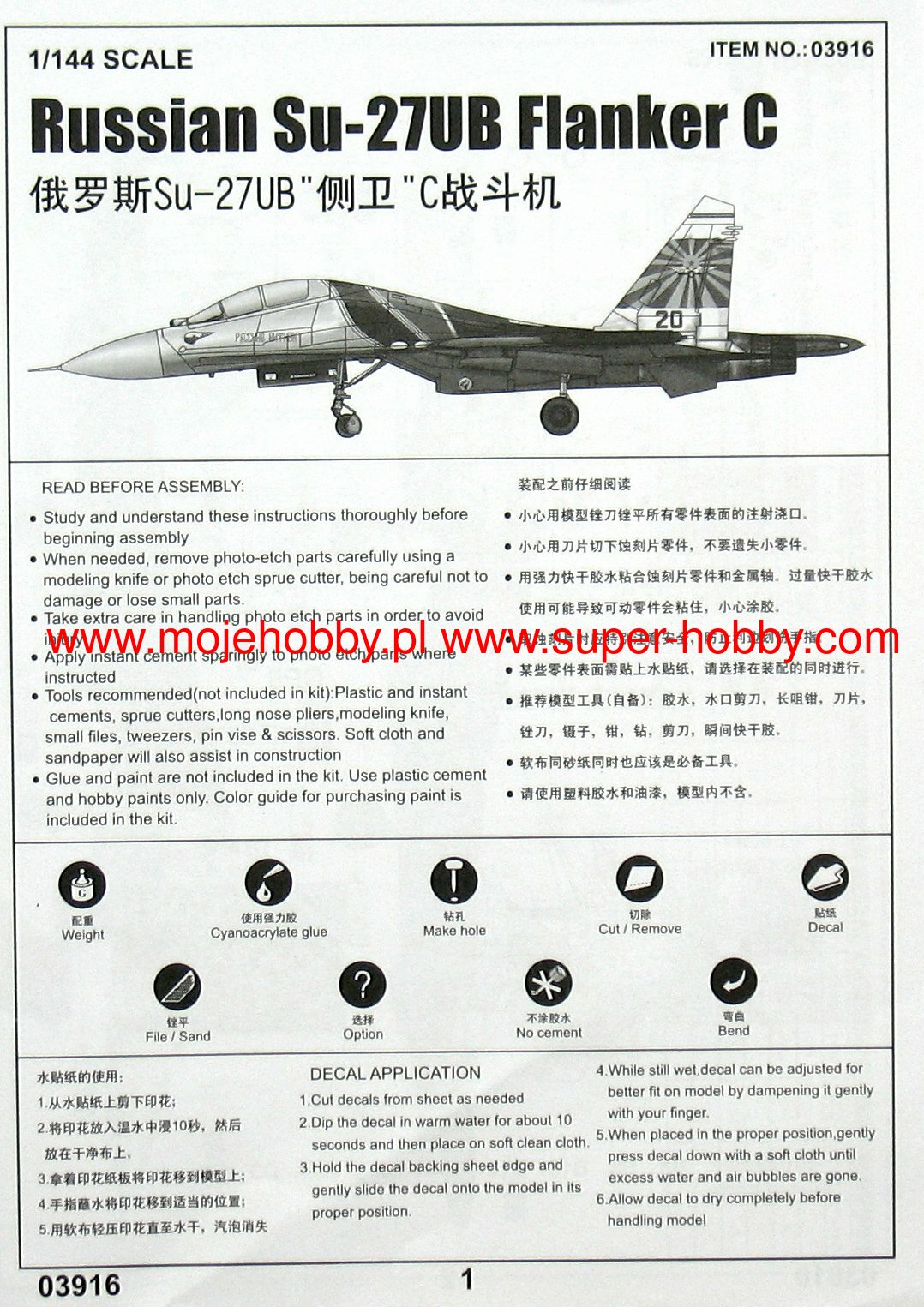 Купить РОССИЙСКИЙ ИСТРЕБИТЕЛЬ СУ-27УБ "ФЛАНКЕР" С RUSSIAN SU-27UB "FLANKER" C FIGHTER (1/144)