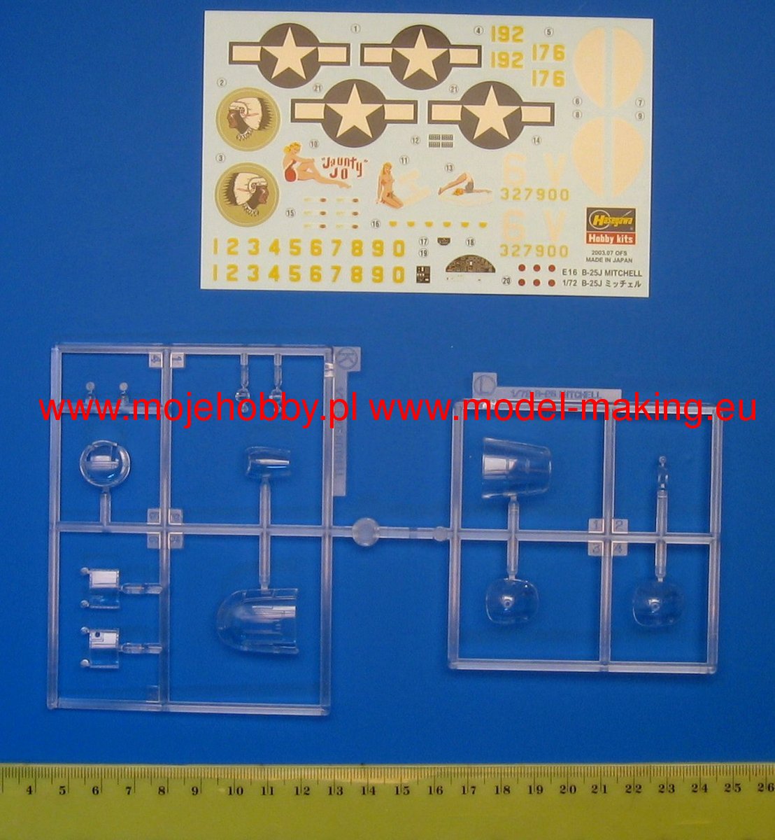 The North American B-25 Mitchell is an American medium bomber from the Second World War. The B-25 is a high-wing, all-metal structure with a retractable three-point landing gear and a double tail tail. The propulsion was two Wright Cyclon engines with the power from 1300KM to 1850KM, depending on the version. The flight of the prototype took place in 1940, and a year later mass production started. During the war, numerous versions of this bomber were produced, including B-25G (with a 75mm gun in the bow of the hull), B-25H (with a 75mm gun and 6 machine guns in the bow of the machine) and the B-25J (with 8 machine guns of 12.7mm in the bow of the fuselage). B-25 planes fought mainly in the Pacific and the Mediterranean basin. A number of them were handed over to Great Britain and the USSR under the lend-and-lease agreement, where they made their combat debut at Stalingrad. From 1943, the Polish 305 squadron flew on the B-25. The B-25 was famous primarily for its daring brave bomb attack on Tokyo in April 1942 (the famous Doolittle raid). Technical data: Maximum speed: 442 km / h, speed of climb: 4 m / s, maximum ceiling 7,600 m, maximum range: 4,300 km, armament: permanent - depending on the version, from 4 to 12 12.7mm Browning machine guns or combination of the 75 mm and km guns. suspended - up to 2700 kg of bombs.
