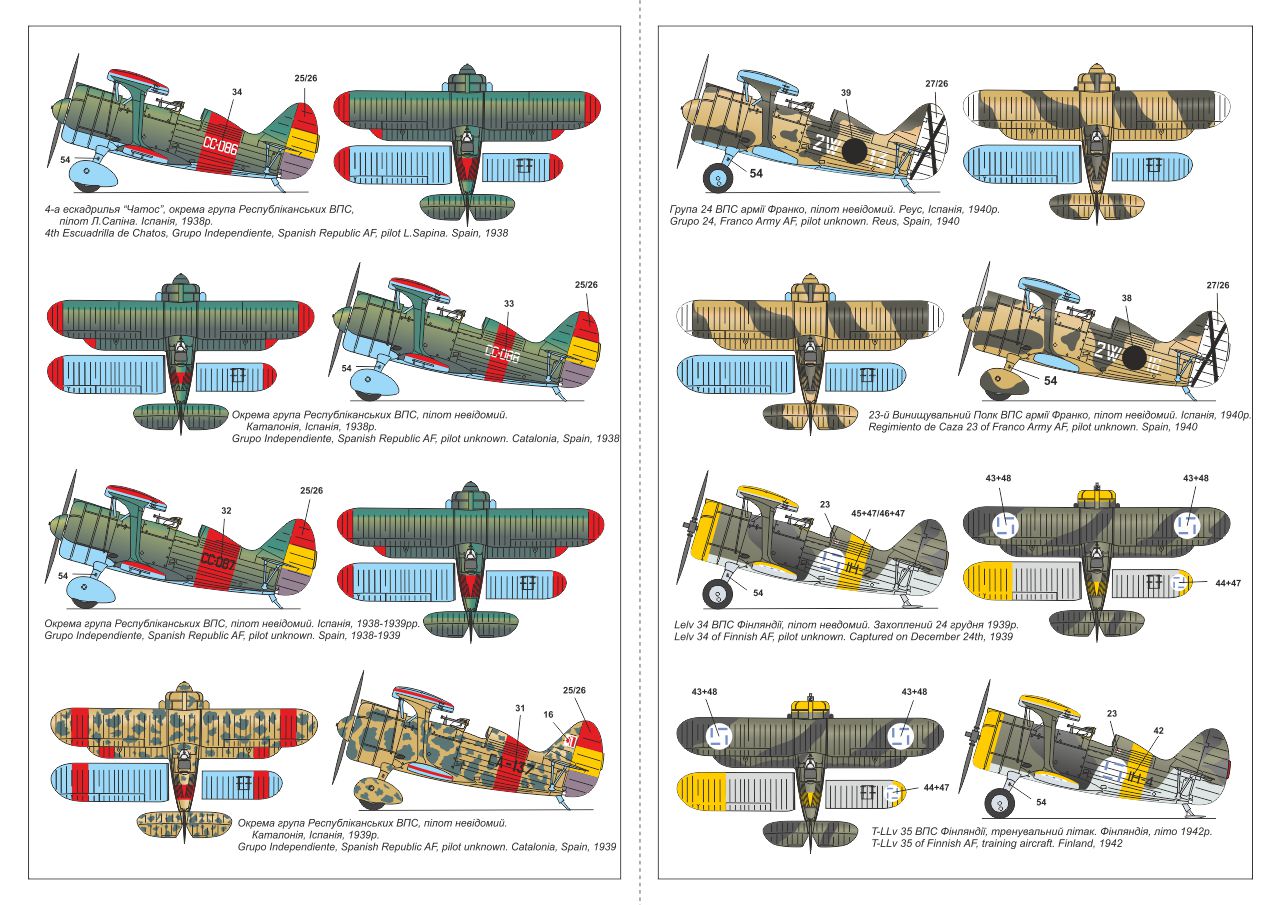 The Polikarpov I-15 is a mixed Soviet single-engine fighter with a classic tail, a biplane with an upper wing in the seagull arrangement. The prototype's flight took place in 1933. The I-15 is a far-reaching modification to the design of the I-5 aircraft. The first machines of this type were still equipped with M22 engines with a capacity of 480HP, but later models were equipped with British Cyclone engines with a capacity of 715HP, and from 1936. The I-15 was equipped with M25 engines of the same power. I-15 planes fought in Manchuria against Japan and were delivered to China. In clashes with Japanese biplanes, it equaled them in performance, but was rather lost in combat, e.g. with the Ki-27. The I-15 was also used in the Spanish Civil War, where it proved to be one of the best biplanes of the time. However, with the large-scale introduction of monoplane aircraft, the I-15 became obsolete. By the end of 1942, all aircraft of this type were transferred to the USSR to secondary tasks. Technical data: length: 6.1 m, wingspan: 9.75 m, height: 2.2 m, maximum speed: 350 km / h, speed of climb: 7.6 m / s, practical ceiling: 7250 m, maximum range: 530 km, armament: fixed - 2 machine guns BS caliber 12.7 mm, suspended - up to 100 kg of bombs.