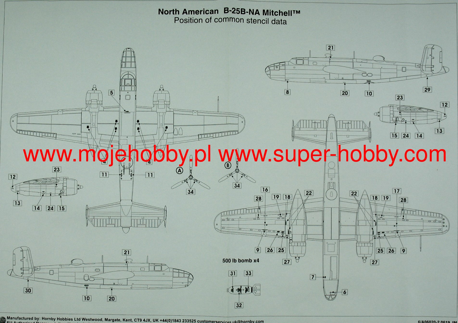 The North American B-25 Mitchell is an American medium bomber from the Second World War. The B-25 is a high-wing, all-metal structure with a retractable three-point landing gear and a double tail tail. The propulsion was two Wright Cyclon engines with the power from 1300KM to 1850KM, depending on the version. The flight of the prototype took place in 1940, and a year later mass production started. During the war, numerous versions of this bomber were produced, including B-25G (with a 75mm gun in the bow of the hull), B-25H (with a 75mm gun and 6 machine guns in the bow of the machine) and the B-25J (with 8 machine guns of 12.7mm in the bow of the fuselage). B-25 planes fought mainly in the Pacific and the Mediterranean basin. A number of them were handed over to Great Britain and the USSR under the lend-and-lease agreement, where they made their combat debut at Stalingrad. From 1943, the Polish 305 squadron flew on the B-25. The B-25 was famous primarily for its daring brave bomb attack on Tokyo in April 1942 (the famous Doolittle raid). Technical data: Maximum speed: 442 km / h, speed of climb: 4 m / s, maximum ceiling 7,600 m, maximum range: 4,300 km, armament: permanent - depending on the version, from 4 to 12 12.7mm Browning machine guns or combination of the 75 mm and km guns. suspended - up to 2700 kg of bombs.