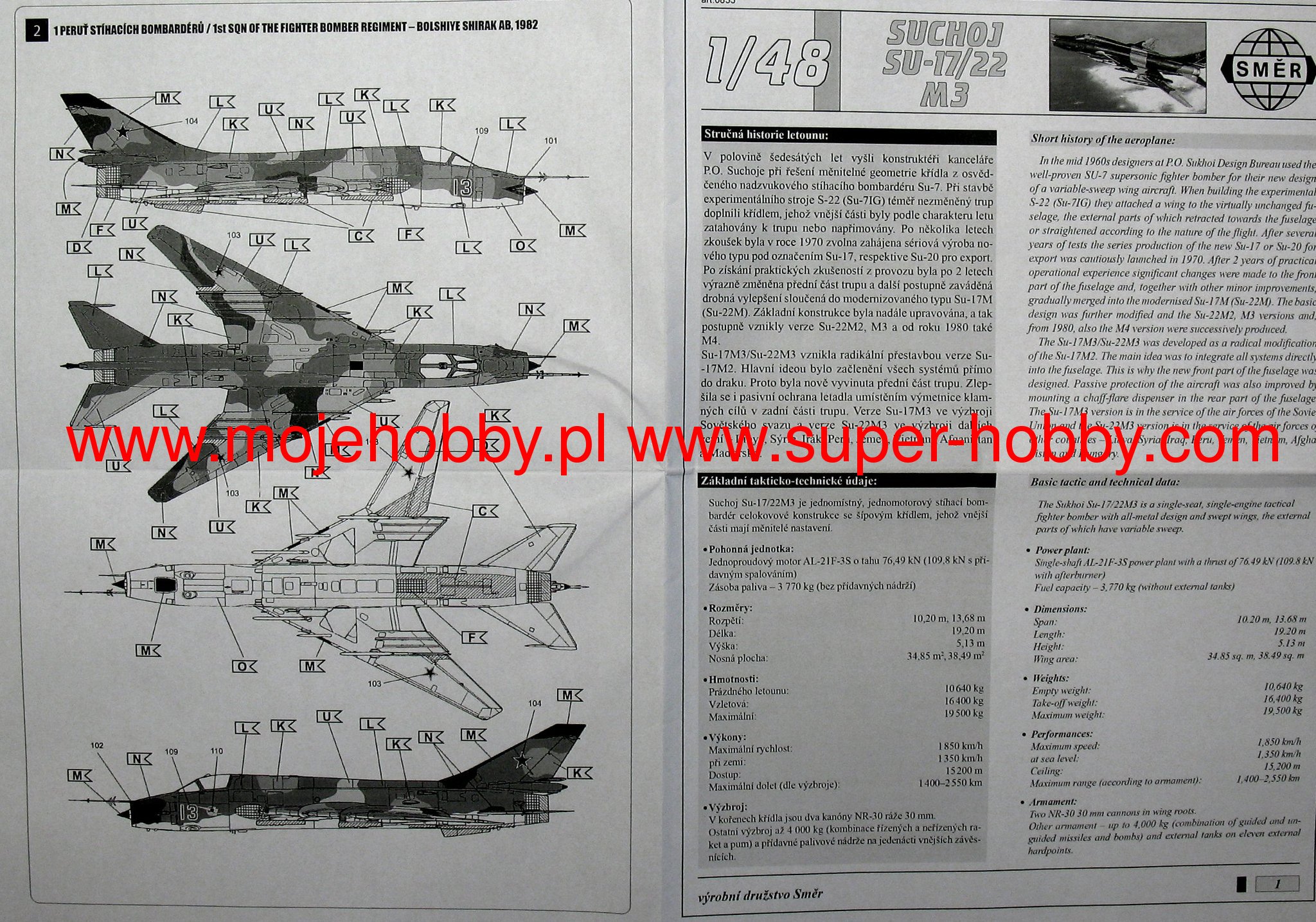 САМОЛЕТ ОКБ СУХОГО СУ-17/22 M3 smer 1/48