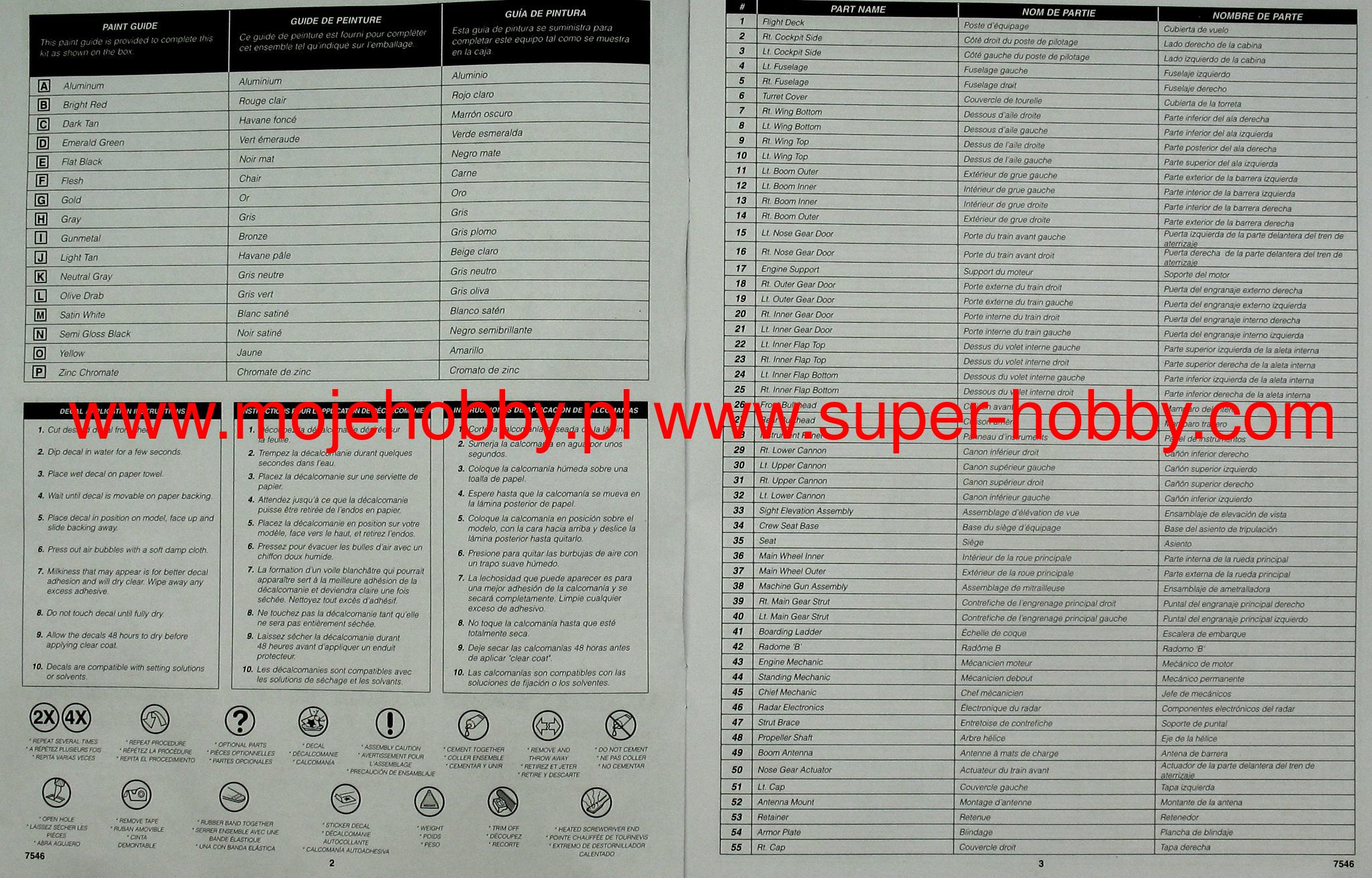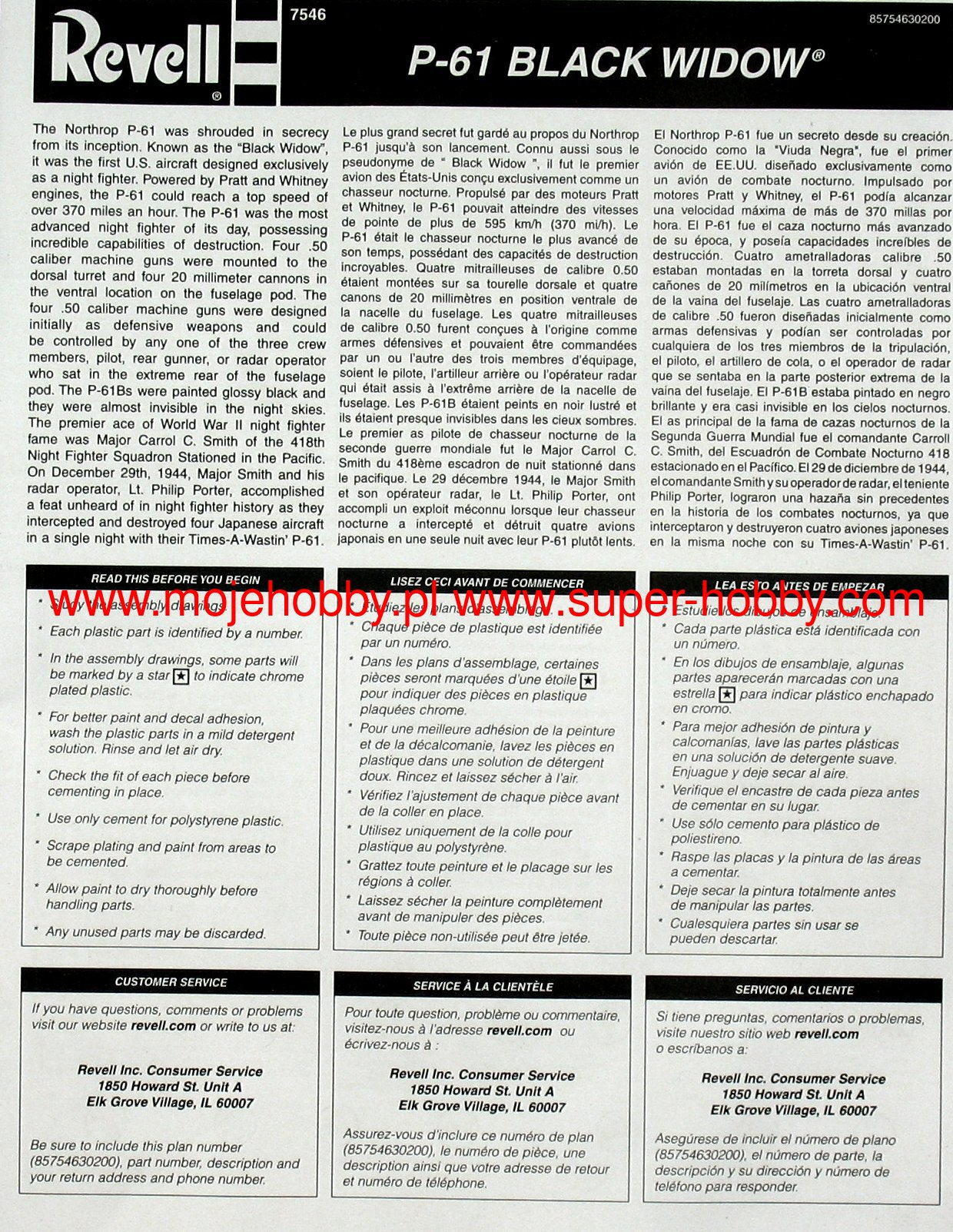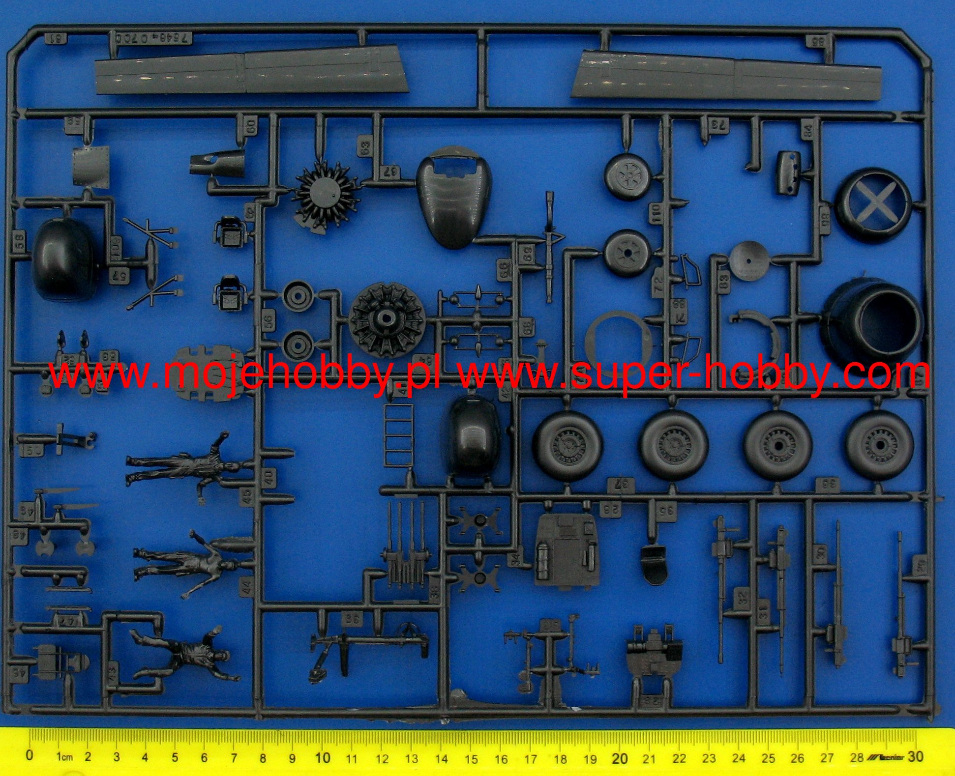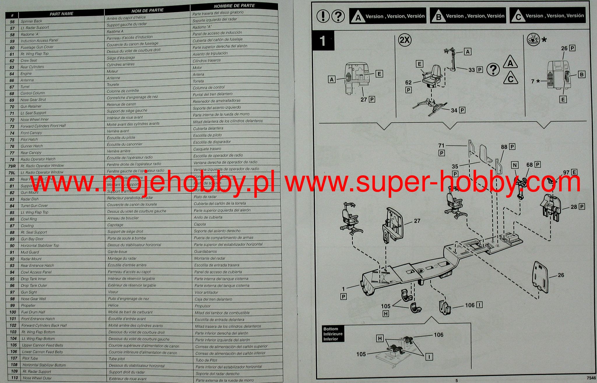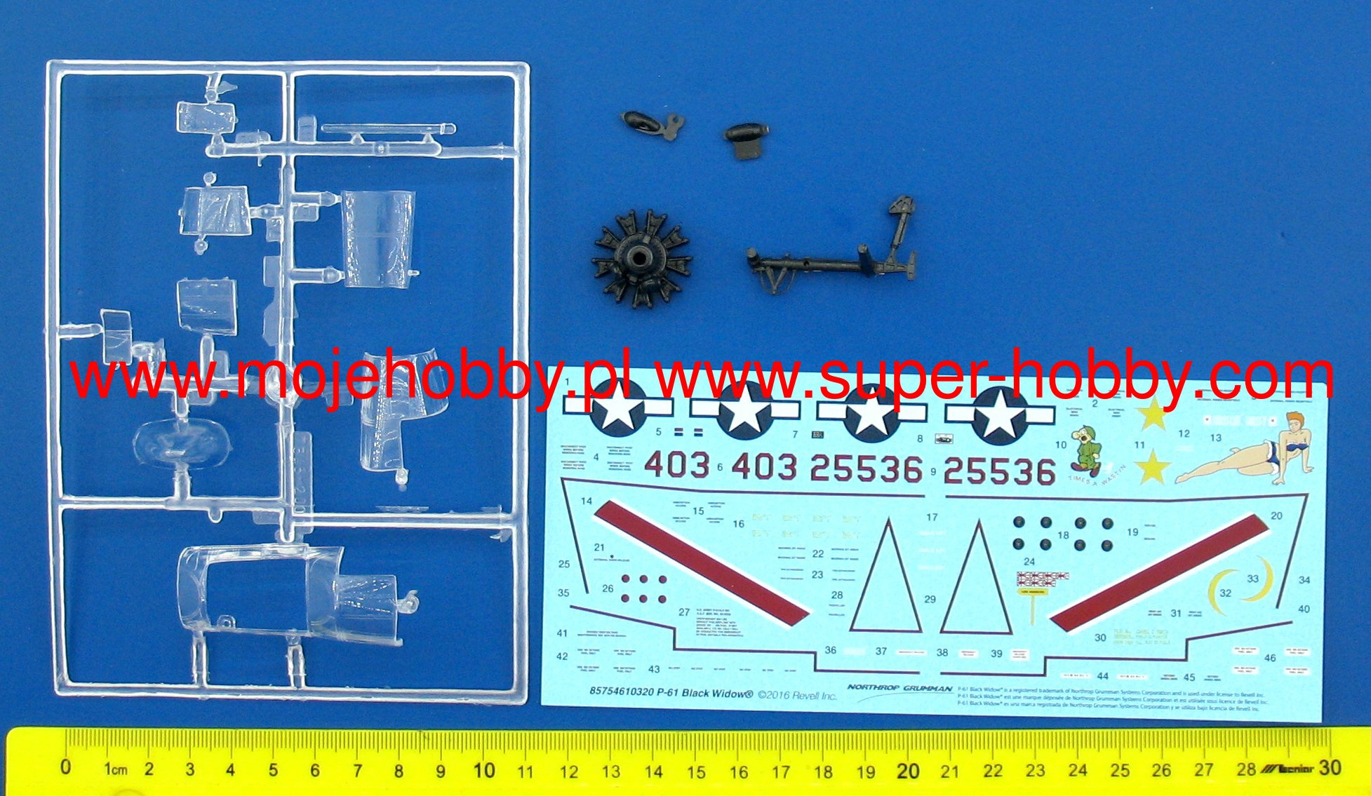 Northrop P-61 był trzymiejscowym, dwusilnikowym nocnym samolotem myliwskim, dwubelkowym redniopłatem z chowanym podwoziem, przystosowanym do operowania z baz lšdowych. Oblot prototypu nastšpił w maju 1942 roku. Samolot był w całoci wykonany z metalu, poczštkowo ze stopów magnezowych, póniej z duralu. Kadłuby belkowe o konstrukcji półskorupowej usztywnione były metalowymi wręgami. Kabina załogi, umieszczona w rodkowym kadłubie, mieciła trzyosobowš załogę. W przedniej częci zasiadał pilot, za nim strzelec pokładowy, a na końcu operator radaru. W wersjach pozbawionych wieży, operatora radaru przenoszono do kabiny strzelca, a z tyłu znajdowało się dodatkowe miejsce. Cała kabina była opancerzona. P-61 otrzymał radar pokładowy SCR-720 o zasięgu 10 km, znajdował się w nosowej częci kadłuba i był sprzężony z urzšdzeniem IFF, identyfikacji swój-obcy. Wskazania radaru odbieranie były w kabinie operatora radaru, który zasiadał z tyłu kadłuba. Uzbrojenie składało się z czterech karabinów maszynowych kal. 12,7 mm umieszczonych w zdalnie sterowanej wieży, którš nie posiadały wszystkie wersje samolotu i czterech działek kal. 20 mm umieszczonych w kadłubie. Każdy członek załogi posiadał celownik, pilot używał go w typowych atakach myliwskich, gdy kierunek lotu przeciwnika pokrywał się z lotem własnego samolotu. W innych przypadkach prowadzeniem ognia zajmował się strzelec pokładowy, który był również operatorem wieży strzeleckiej. W razie koniecznoci obrony przed atakiem z tyłu obowišzki strzelca i operowanie wieży strzeleckiej przejmował operator radaru. Dodatkowo częć maszyn, głównie operujšcych w Europie, wykonywała akcje szturmowe używajšc bomb, rakiet niekierowanych lub zbiorników z napalmem. Dane techniczne: długoć: 15,11m, rozpiętoć skrzydeł: 20,12m, wysokoć: 4,47m, prędkoć maksymalna: 589km/h, prędkoć wznoszenia: 112,9m/s, zasięg maksymalny: 3060km, pułap praktyczny: 10600m, uzbrojenie: stałe- 4 karabiny maszynowe M2 kal.12,7mm oraz 4 działka Hispano kal. 20mm, podwieszane-do 2880 kg bomb lub 6 wyrzutni pocisków HVAR kal.127mm. Co oprócz modelu będę potrzebować do jego sklejenia?