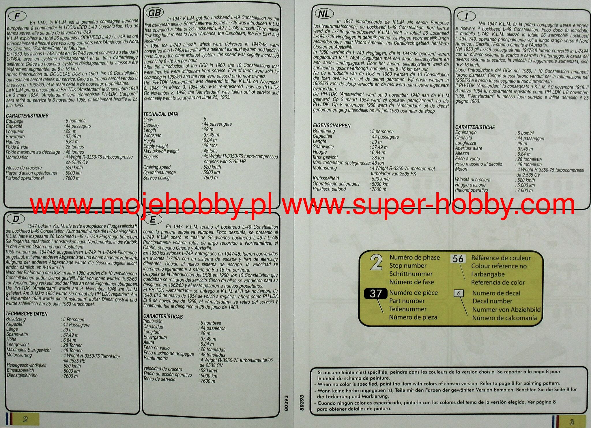 The Lockheed Constellation was an American passenger and transport plane from the Second World War and the post-war period. The drive - in the L-1049G version - was provided by four engines Wright R-3350-DA3, 3250 hp each . The prototype flight took place in May 1943. The serial production lasted in the years 1943-1958 and resulted in the creation of approx. 850 aircraft of this type. The Lockheed Constellation was originally planned as a long-range airliner for Trans Word Airlines in 1939. The new machine was distinguished by a rear tail with three lobes, it was also aerodynamically refined and used many technological innovations of that time, such as enhanced control of hydraulic systems or wing de-icing systems. The plane, however, with the US joining the war in 1941, partially changed its character and was also developed as a transport plane. He served in the USAAF in this dual role in the period 1943-1945. On the other hand, from October 1945, the production of the civilian, passenger version was started. Several versions of this very successful aircraft were created in its course, including: L-649 (passenger version, which can take up to 81 passengers), L-749 (version with increased range enabling transatlantic flights) or L-1049 Super Constellation ( extended version, which can take up to 109 passengers). It wasn't until the advent of passenger jet planes like the Boeing 707 that clearly diminished the importance of Lockheed Constellation in air transport.
