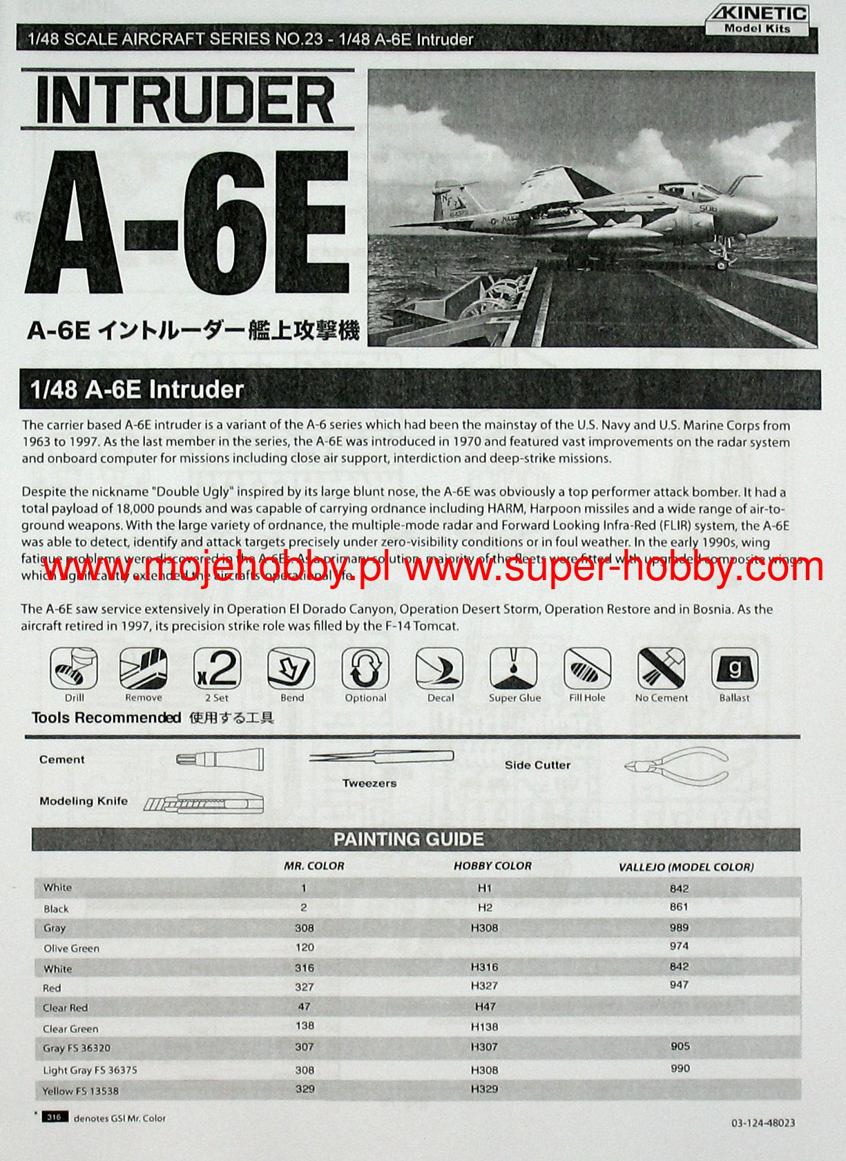 KINETIC K48023 A-6E "INTRUDER" (GRUMMAN) /ПАЛУБНЫЙ ШТУРМОВИК/ 1/48 (1/48) продается в 1 магазинах. Выберите подходящий Вам интернет-магазин и перейдите по ссылке «В магазин».