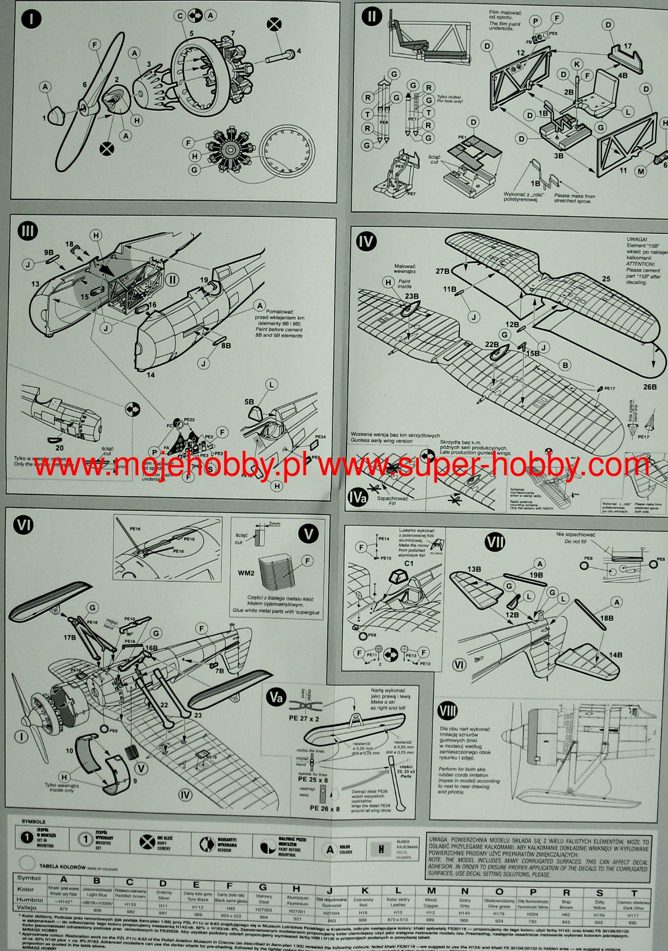 Download Mirage Hobby PDF catalogueThe PZL P.11a (the so-called eleven) is a Polish, single-engine fighter plane with a metal structure with Puławski wings, a classic tail and a fixed landing gear. The flight of the prototype took place in 1931, but serial production continued in 1937-1939. The first serial version is the PZL P.11a powered by the Bristol Mercury IV S2 engine with a power of 550 HP. However, it was treated as a transitional version and only 50 were ordered. The most famous version of the "eleven" - PZL P.11c - appeared in the summer. It had an improved fuselage, wings and a vertical stabilizer. It all improved the aerodynamics of the plane. The drive unit has not changed. The interest in the construction was expressed by, among others, Romania, where 95 units of the licensed PZL P.11 were manufactured at the IAR plants. At the outbreak of the war, all versions of the P.11 were much slower than their German opponents, but at the same time had greater maneuverability, high rate of climb and a less emergency engine than German planes. They had many victories over the enemy during the September campaign, mainly as part of the Pursuit Brigade. Technical data (version P.11c): length: 7.55m, wingspan: 10.72m, height: 2.85m, maximum speed: 367km / h, rate of climb: 14.5m / s, maximum ceiling: 8000m, range maximum: 550 km, armament: fixed - 2 machine guns wz.33 cal.7.92 mm.