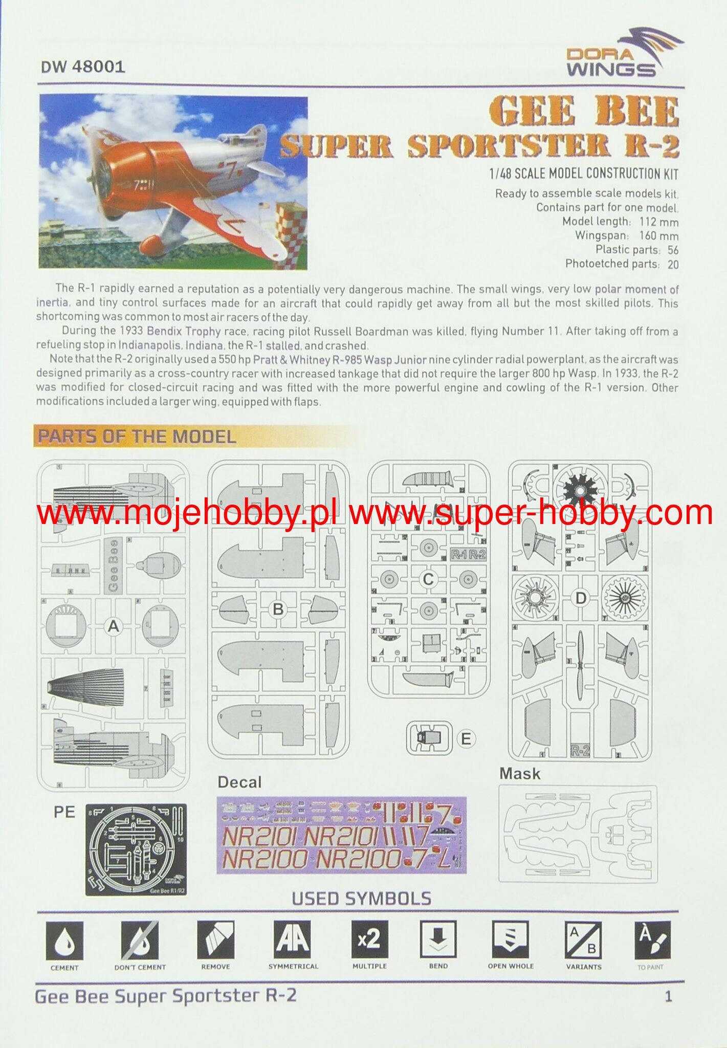 The Granville R-1 Gee Bee was a single-engine sports and racing aircraft, with a metal low wing structure, manufactured in the USA from the interwar period. The drive was provided by a single Pratt and Whitney Wasp Senior engine with 535 HP. The plane made its first flight in 1932. Serial production was carried out in the years 1932-1933. The R-1 Gee Bee was designed and manufactured at Granville Brothers Aircraft. The machine was characterized by a very bulky fuselage, short and small wings, a rudimentary tail tail and a pilot's cabin located far back of the fuselage. She was also incredibly difficult to pilot and was involved in many air accidents. At the same time, however, it had a very good top speed and when piloted by James Doolith in 1932, it set a speed record for this class of aircraft. Mainly for this reason, it became the benchmark for several American sports aircraft designs from this period.
