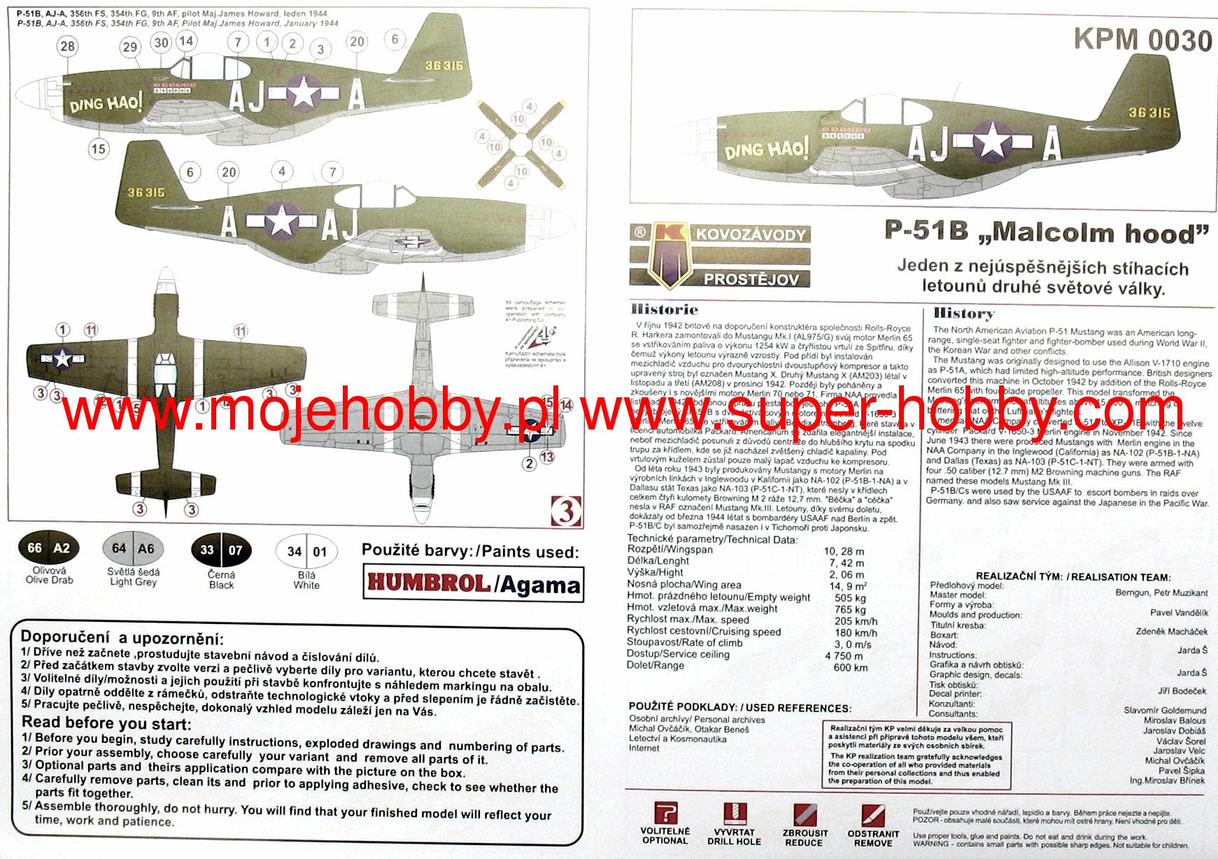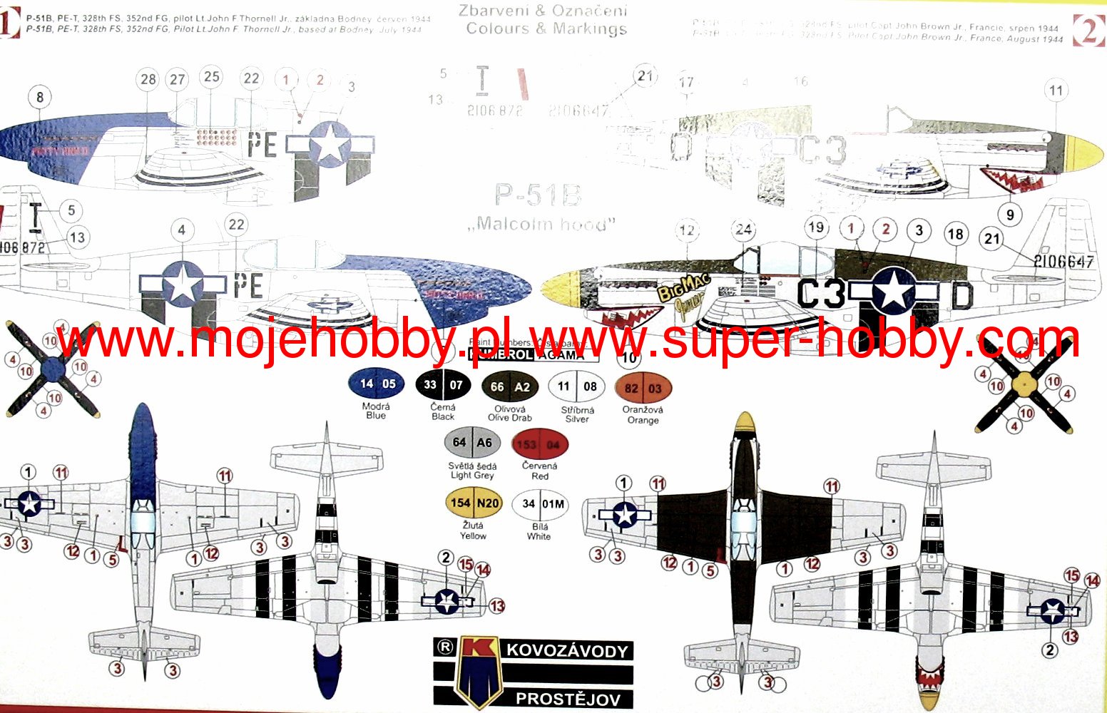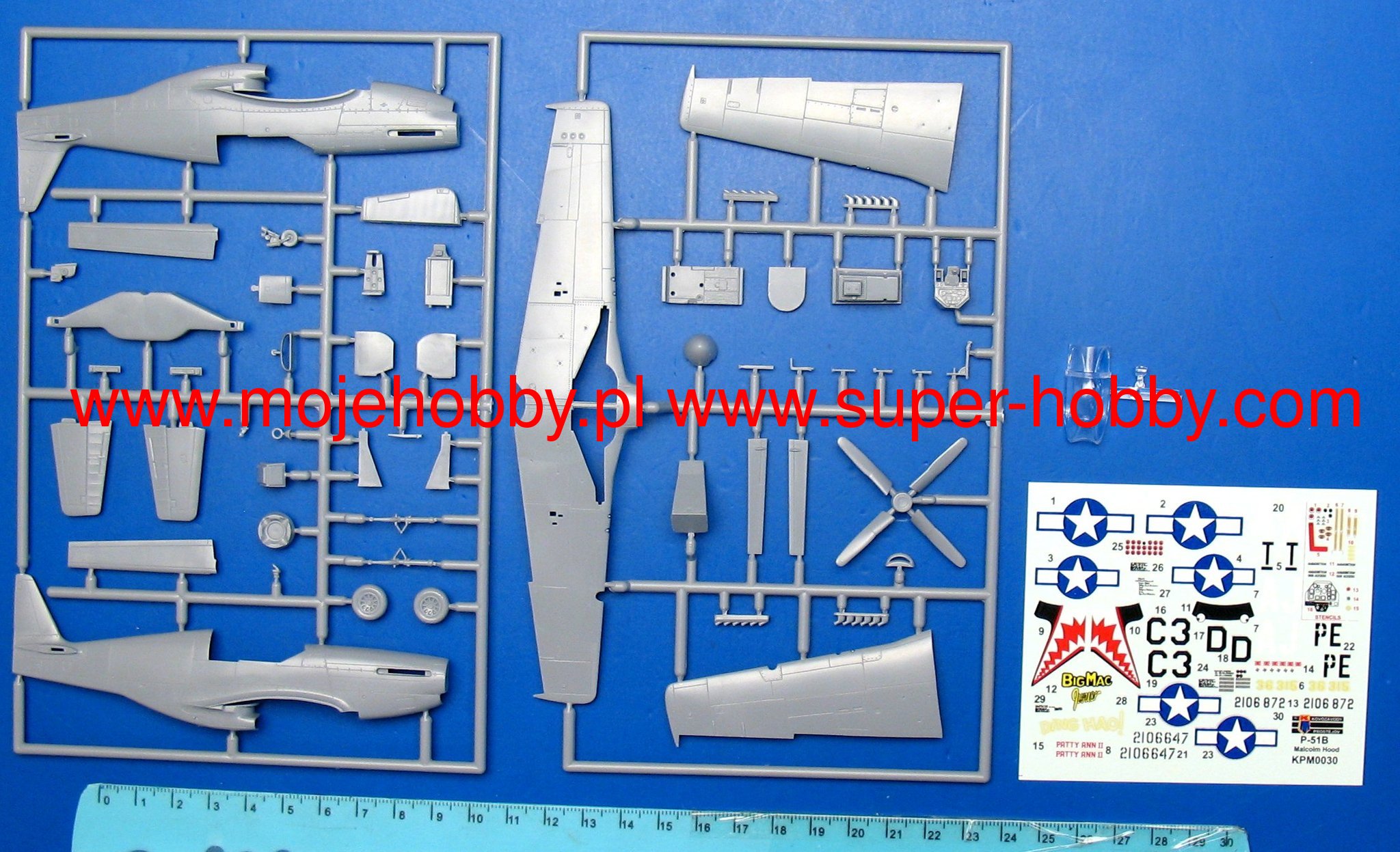 North American P-51 Mustang to amerykański, jednosilnikowy, samolot myliwski dalekiego zasięgu oraz samolot szturmowy o usterzeniu klasycznym i konstrukcji w pełni metalowej. Oblot prototypu miał miejsce 26 padziernika 1940 roku. P-51 Mustang zyskał reputację jednego z najlepszych, jeli nie najlepszego, myliwca z okresu II wojny wiatowej. Wymiana silnika Allison V-1710-39 pochodzšcego jeszcze z pierwszego projektu na motor Rolls-Royce Merlin (wersja P-51 Mustang Mk.Ia) sprawiła, że o Mustangu jak nigdy wczeniej można było mówić iż sięgnšł doskonałoci. Jednomiejscowy myliwiec zachwycał swojš prędkociš maksymalnš, zasięgiem, zwrotnociš, potęgš uzbrojenia. Kombinacja tych wszystkich najważniejszych dla oceny samolotu parametrów sprawiła, że Mustang sprawdzał się w praktycznie każdej powierzonej mu roli: zdobywał przewagę w powietrzu, eskortował, przeprowadzał misje zwiadowcze, atakował cele naziemne. O klasie konstrukcji wiadczy fakt, że Mustang pozostawał w czynnej służbie aż do lat 70-tych! Jednš z najważniejszych wersji był P-51D, stworzony na podstawie P-51B. Otrzymał on kroplowš owiewkę kabiny, zapewniajšcš wietnš widocznoć, otrzymał też nowy silnik- Packard V-1650-7, co wydatnie poprawiło osišgi. Dane techniczne (wersja P-51D): długoć: 9,83m, rozpiętoć skrzydeł: 11,28m, wysokoć: 4,08m, prędkoć maksymalna: 703km/h, prędkoć wznoszenia: 16,3m/s, zasięg maksymalny: 2755km, pułap praktyczny: 12800m, uzbrojenie: stałe- 6 karabinów maszynowych M2 kal.12,7mm , podwieszane-do 908 kg bomb lub 10 wyrzutni rakiet H.V.A.R kal.127mm. Co oprócz modelu będę potrzebować do jego sklejenia?