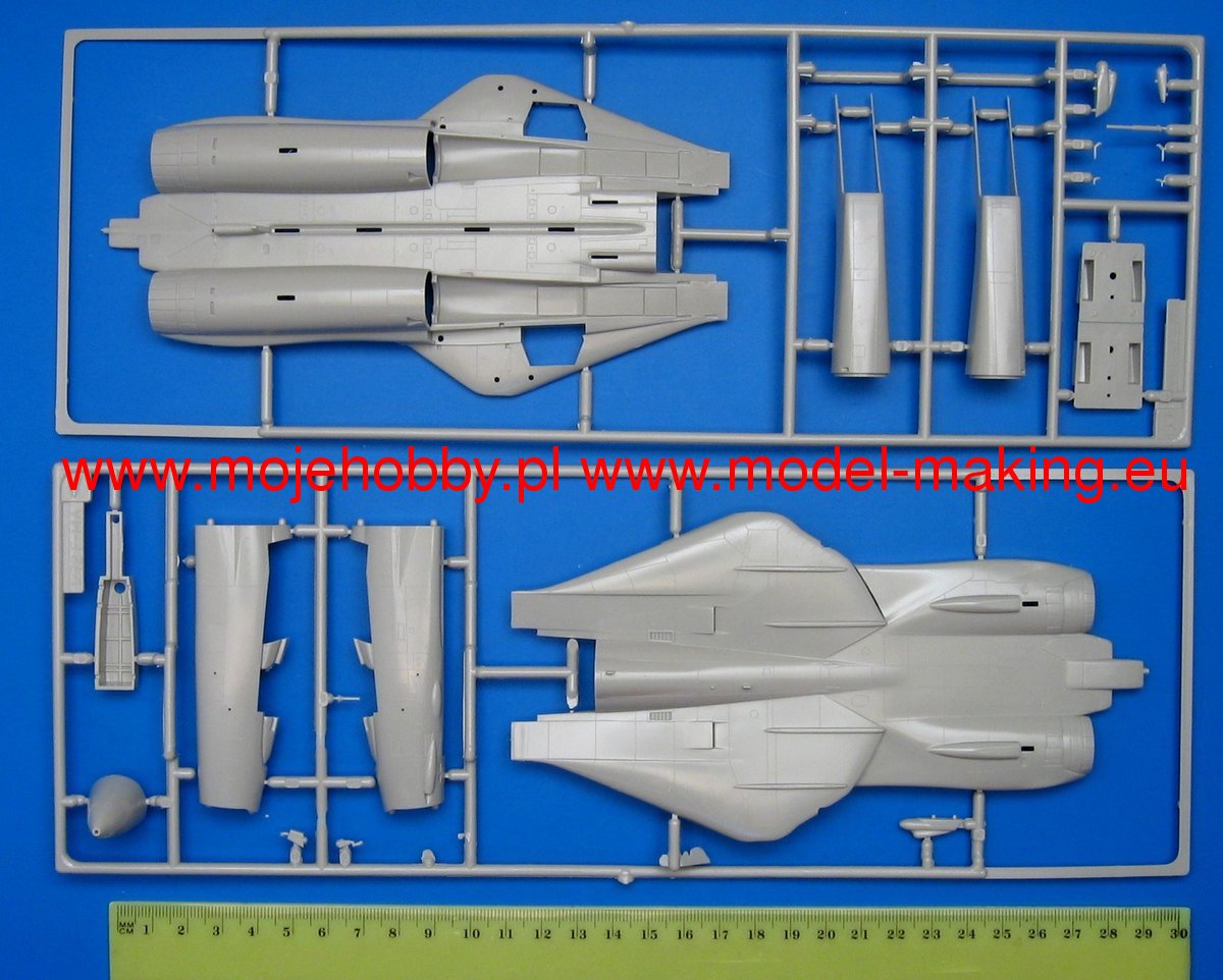 Designed as the U.S. Navy's primary fighter, the F-14 Tomcat could perform air superiority, escort, and strike missions and was undoubtedly one of the most sophisticated and technologically advanced aircraft ever to serve an aircraft carrier. The prototype machine was flown on December 21, 1970, and the first planes were delivered to the US Navy four years later. The last Tomcat planes were decommissioned only in 2006, which perfectly illustrates the high quality and great performance of this machine. The most innovative and characteristic solution for the F-14 are the wings with variable geometry. Controlled by computer or manually by the pilot, they can change their angle of attack from 20 degrees at minimum speed to 60 degrees at supersonic speeds. The changing geometry of the wings also allows for optimal positioning of the wings when maneuvering tightly, thanks to which this powerful aircraft exhibits amazing maneuverability. The heart of the Tomcat weapon system is the Hughes ANG-9 radar, usually cooperating with the AIM-54A Phoenix air-to-air missiles with a range of up to 180 km. Being able to track and attack more than one target is especially important. No less important element of the armament, as shown by the combat experience in the Vietnam War, is the cannon - in the F-14 mounted inside the M-61 Vulcan hull, firing up to 6,000 rounds per minute! Of course, you can also attach other types of weapons to the Tomcat, such as Sparrow, Sidewinder rockets or various bombs. The F-14 also owes a lot of its success to the excellent power unit in the form of a pair of Pratt-Whitney TF30 engines with a thrust of 9300 daN with afterburning. Technical data: Maximum speed: 2480 km / h, climb speed: 153 m / s, practical ceiling 17100 m, maximum range: 3200 km, armament: fixed - single, six-barrel 20mm M61-A1 cannon, suspended - up to 6580 kg cargo.