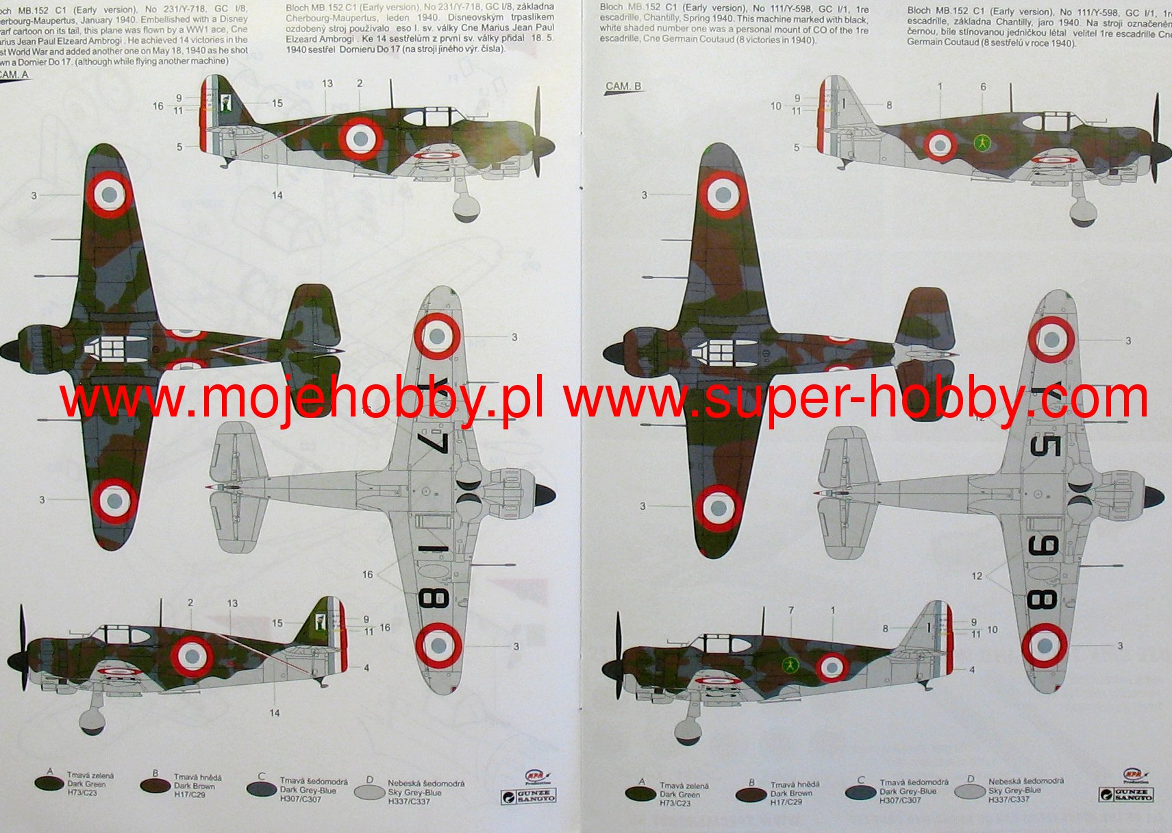 The Bloch MB.152 was a French full-metal half-shell fighter with a low wing configuration and a classic tail. The drive was provided by a single Gnome-Rhone radial engine GR 14N25 with 1100 hp. The flight of the prototype took place in 1938, and serial production continued in 1939-1940, ending with the production of about 660 machines. The Bloch MB.152 was created as a response to the demand submitted in 1934 by the French Air Force for a completely new low-wing fighter plane. The Bloch plant originally developed the MB.150 and MB.151 models, but only the MB.152 model met with the approval of French aviation decision makers and was approved for use as a supplement to the Morane-Saulnier MS.406 aircraft. The Bloch company used many modern solutions in the MB.152, e.g. an all-metal half-shell structure or a landing gear retracted in flight. Due to the fact that the serial production of the machine started in the summer of 1939, only the basic version was created: MB.152C1. During the French campaign in 1940, pilots flying this type of aircraft shot down about 150 German machines. After the surrender of France in June 1940, the MB.152 planes were used by the Vichy air force.